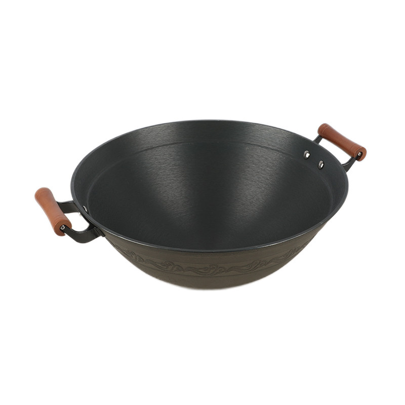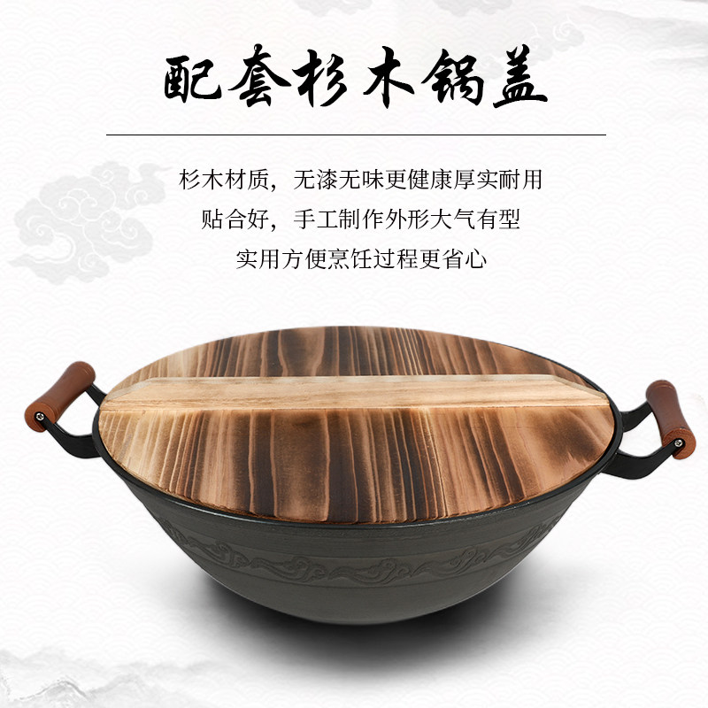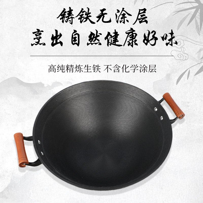 老式铁锅双耳铸铁锅燃气灶电磁炉炒菜锅不粘炒锅无涂层加厚生铁锅