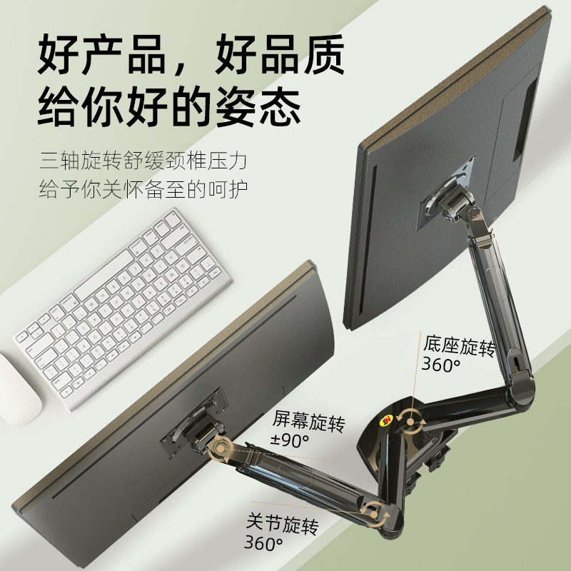 A3 显示器支架17-32英寸免打孔机械弹簧恒力架构 2-9kg大承重