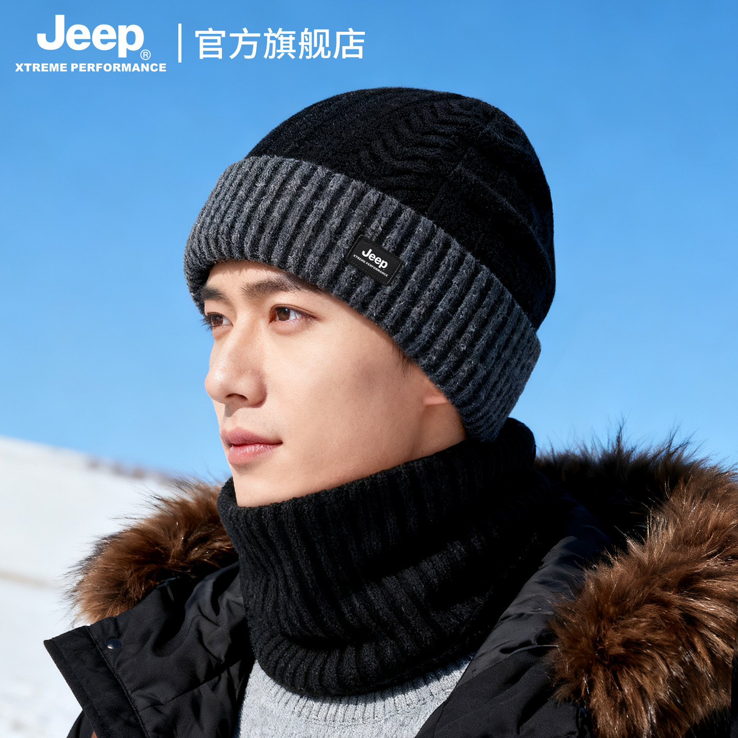 jeep吉普帽子男士冬季骑行护耳保暖毛线帽加绒加厚防寒棒球针织帽