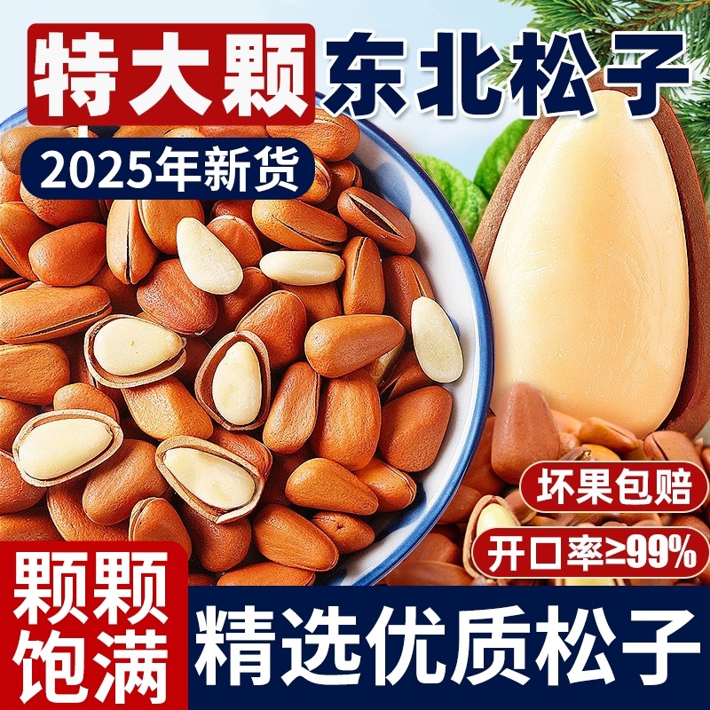 2025东北纯野生开口松子500g新货特大手剥松籽散装大颗粒手拨坚果