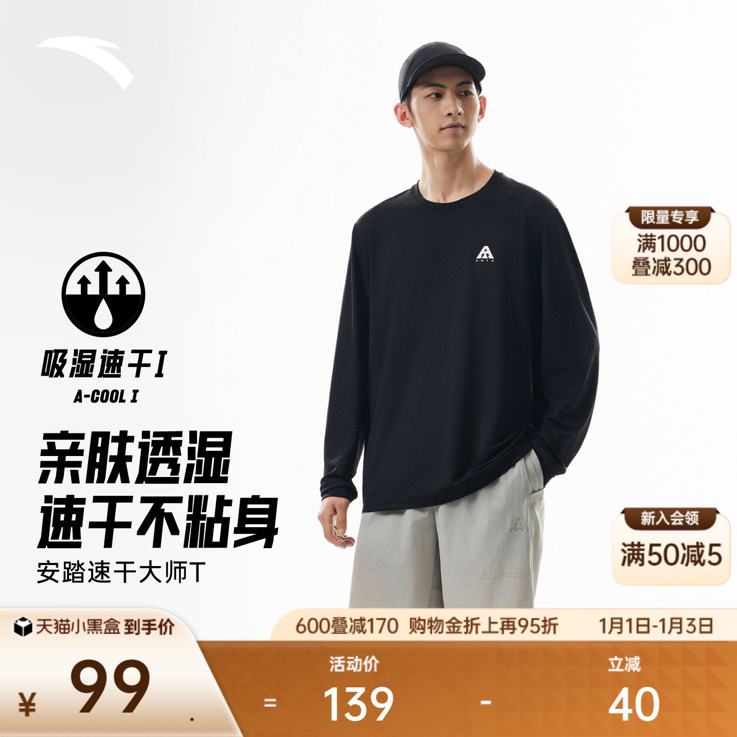 安踏速干大师丨大地之壳速干长袖t恤男士冬季轻户外徒步登山上衣