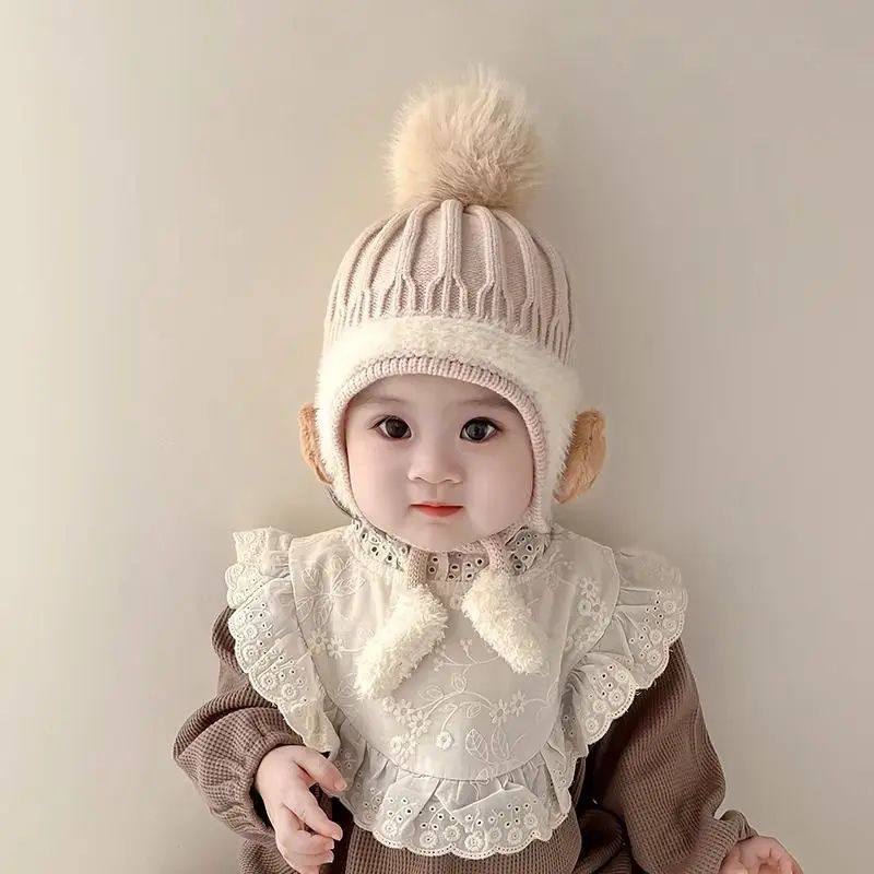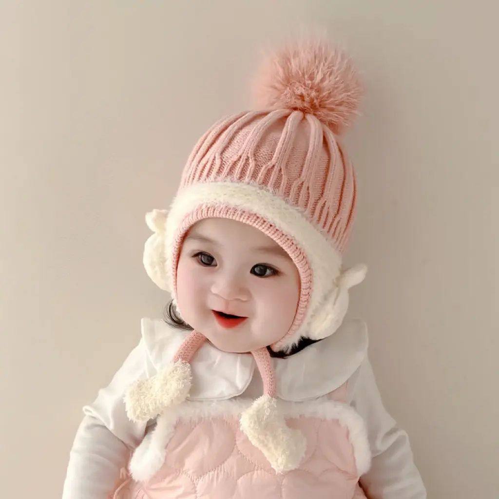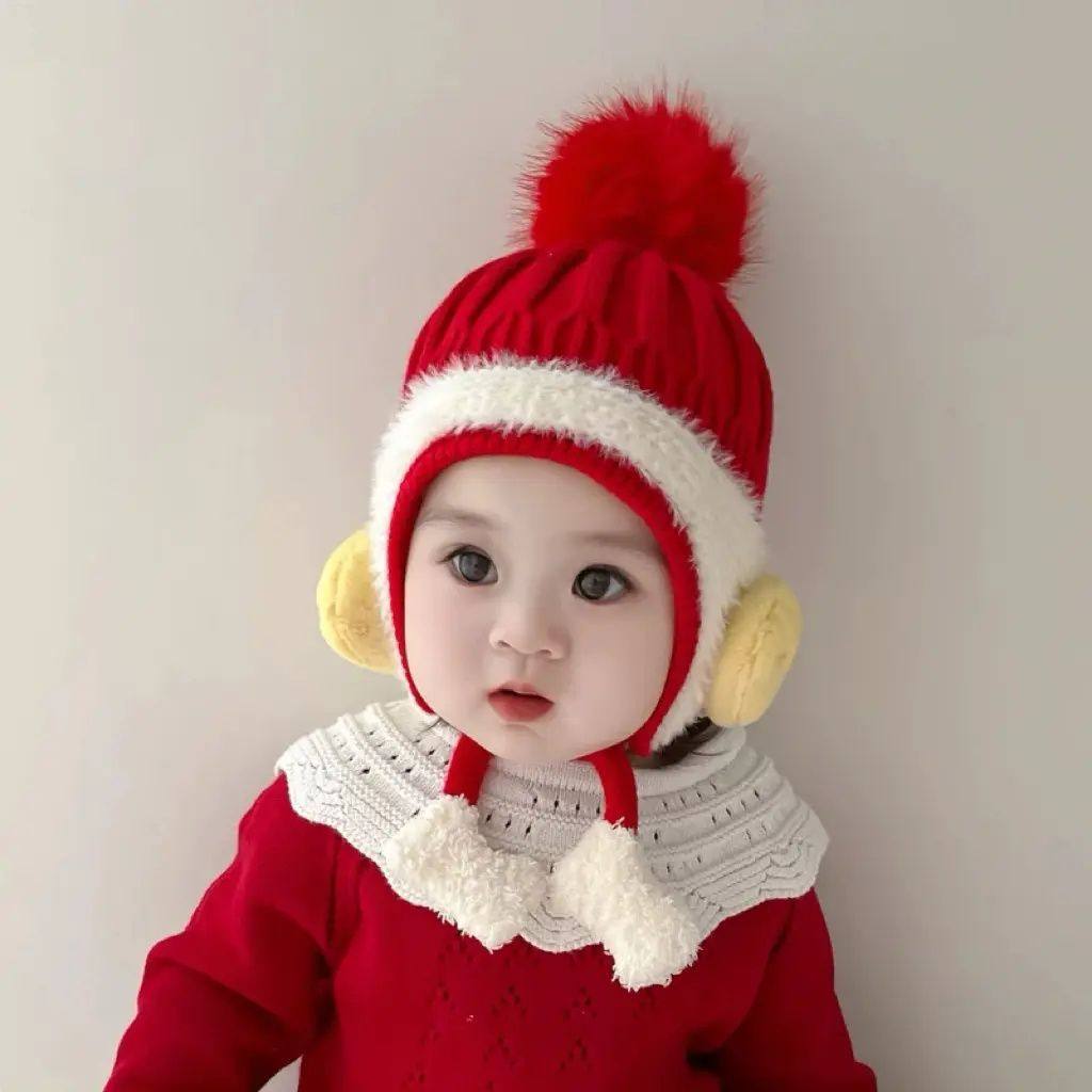 宝宝帽子秋冬季婴儿毛线帽男女护耳帽婴幼儿针织帽可爱保暖春秋款