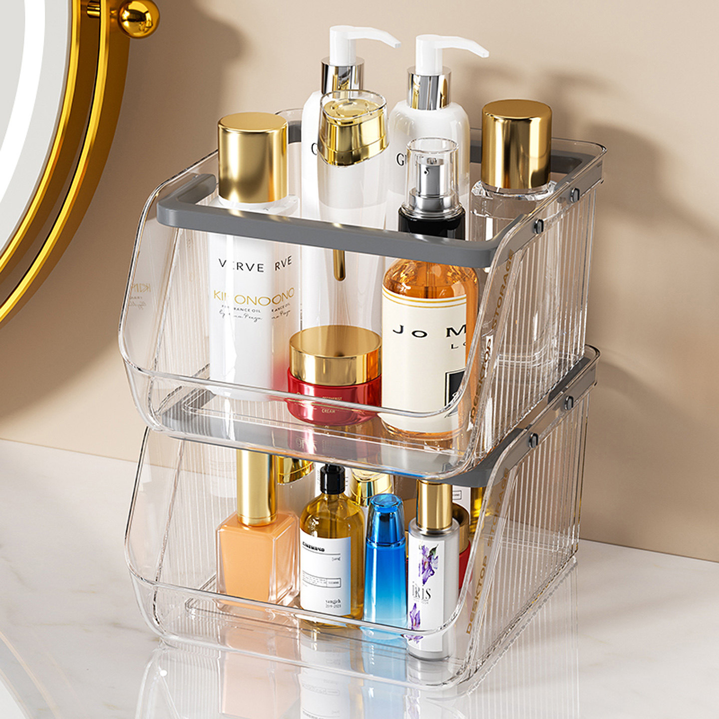 粉扑收纳盒桌面化妆品亚克力次抛口红护肤迷你翻盖杂物透明置物架