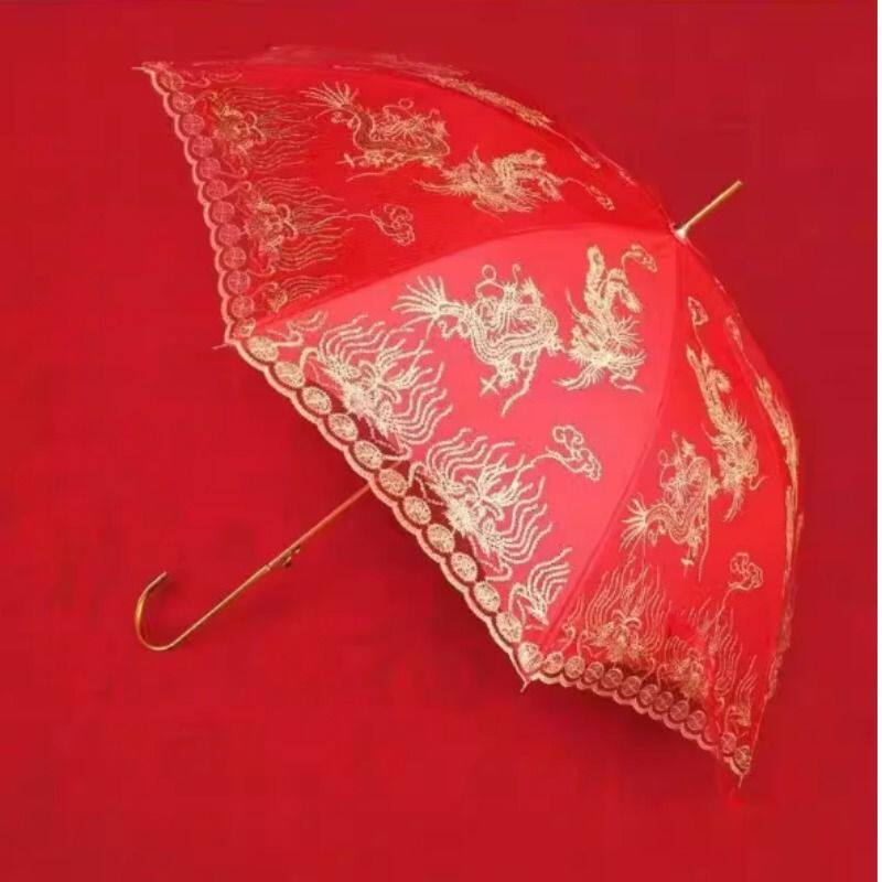 结婚红伞婚庆伞大红色雨伞蕾丝边长柄红伞婚庆伞婚礼雨伞女新郎伞