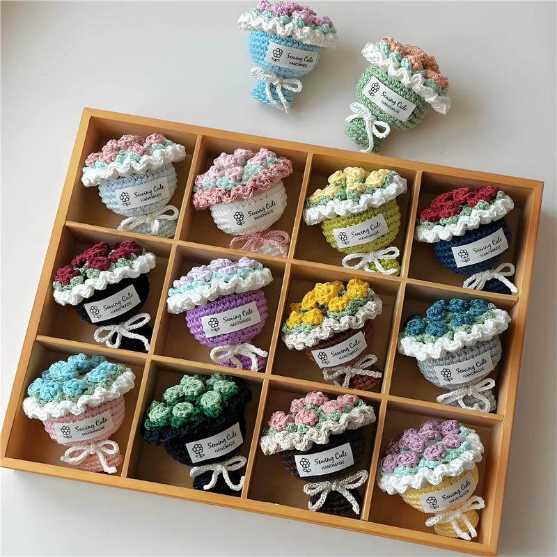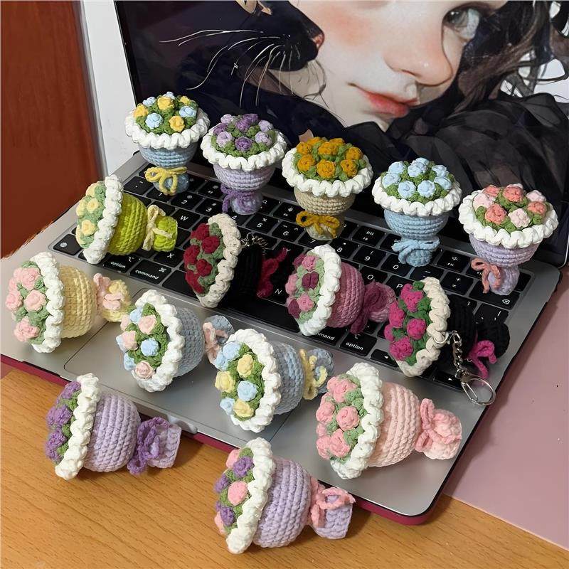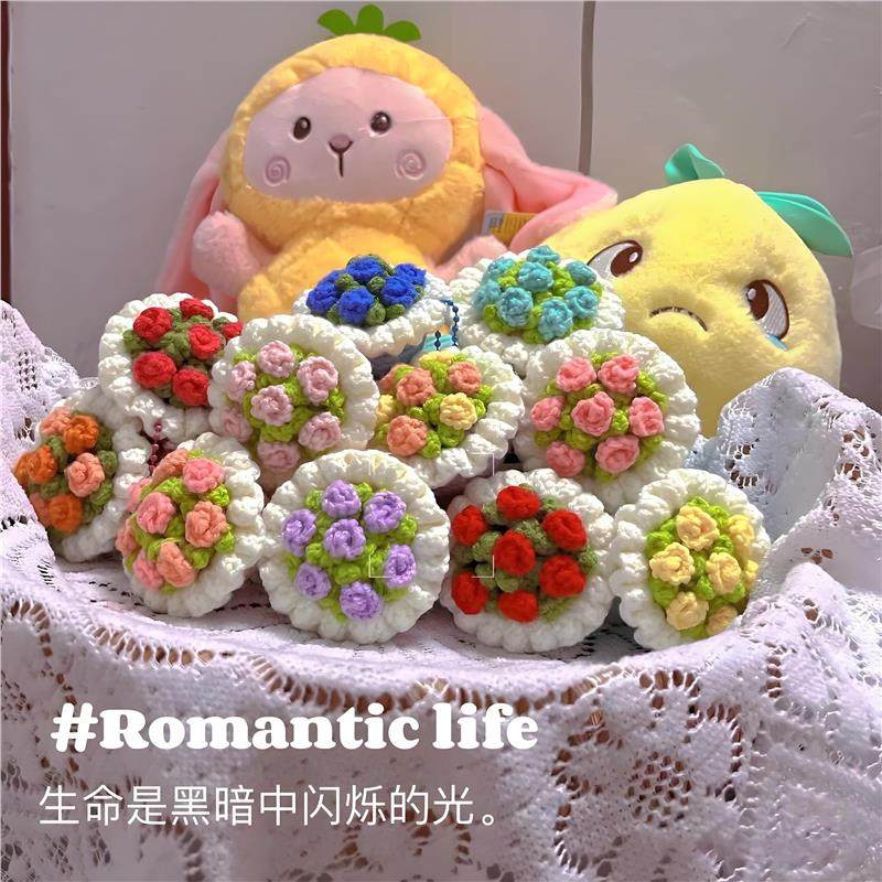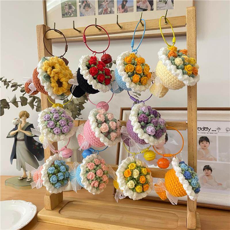 diy创意迷你小花束手捧花 手工编织毛线钥匙扣生日礼品包挂件成品