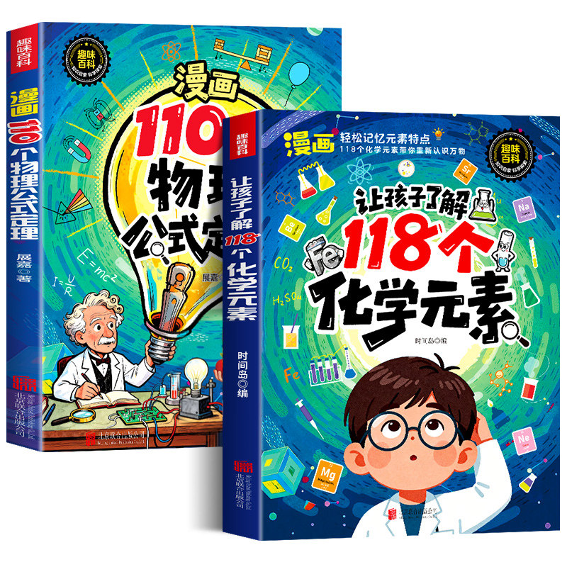 漫画版趣味110个物理公式定理118个化学元素启蒙书孩子爱看的儿童百科物理化学实验知识小学生阅读课外漫画书籍了解正版常识文化