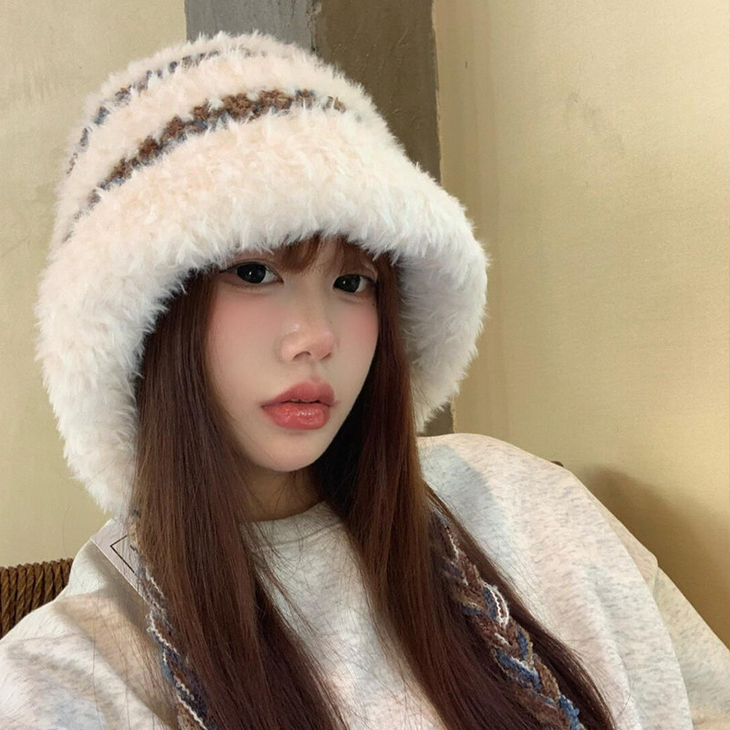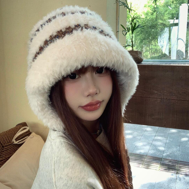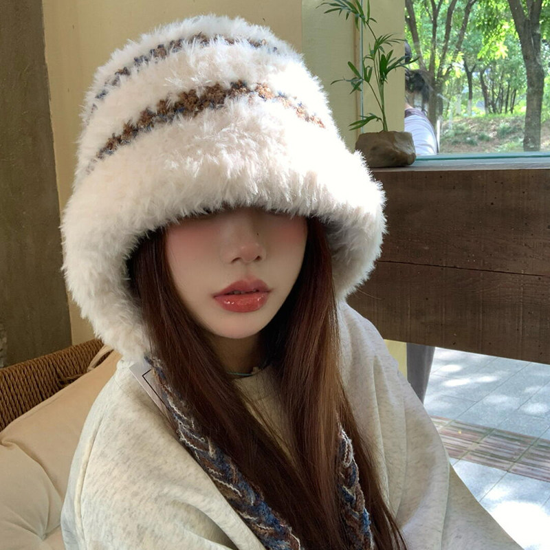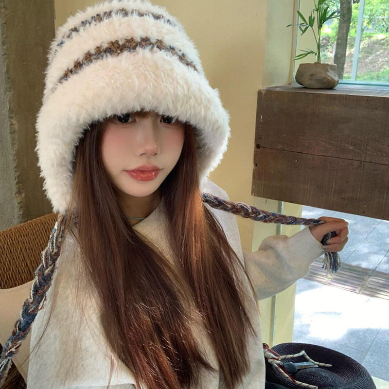 显脸小雷锋帽子毛绒绒秋冬大头围保暖防寒可爱绑带毛线针织套头帽