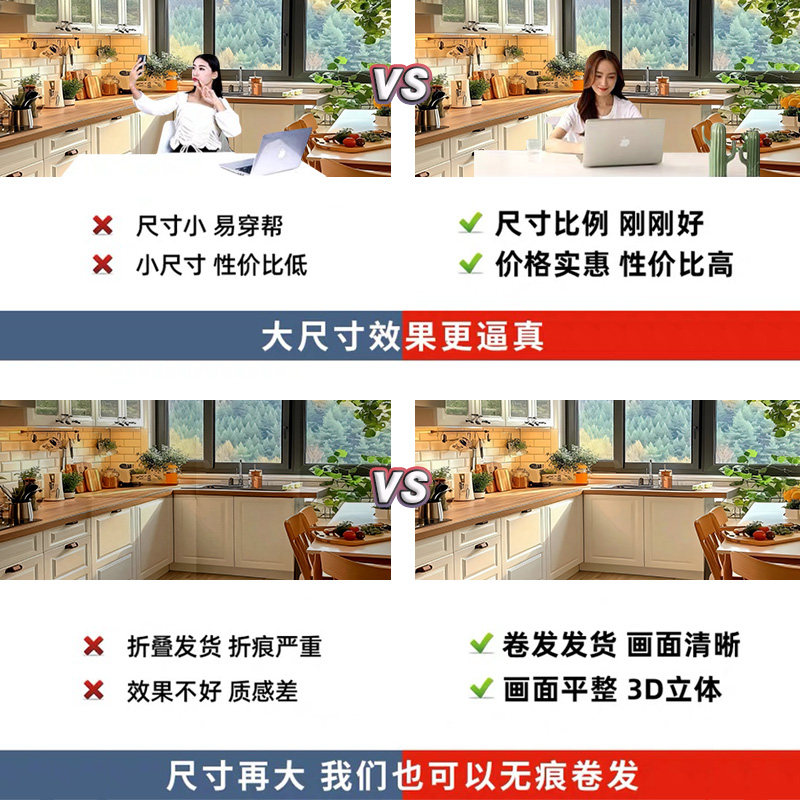 美食吃播田园风清新厨房直播背景布做饭教学方法烹饪直播间背景墙可定制挂布新款高清仿真壁纸壁画餐具装饰