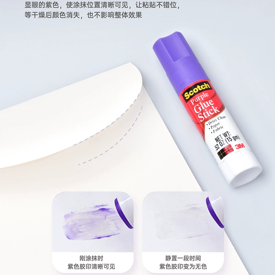 3M思高固体胶棒高粘度无毒儿童固体胶可水洗cos遮眉白色25g胶棒紫色PVP变色胶8g/15g文具用品学生用强力胶棒
