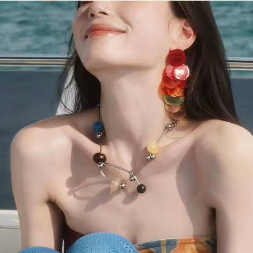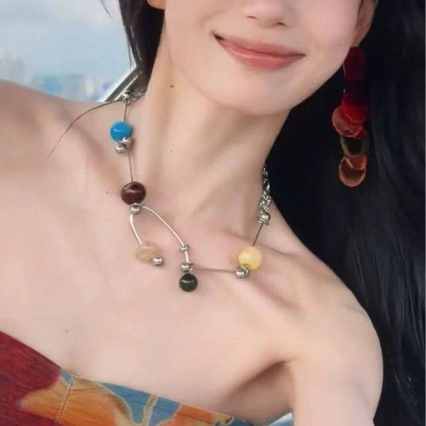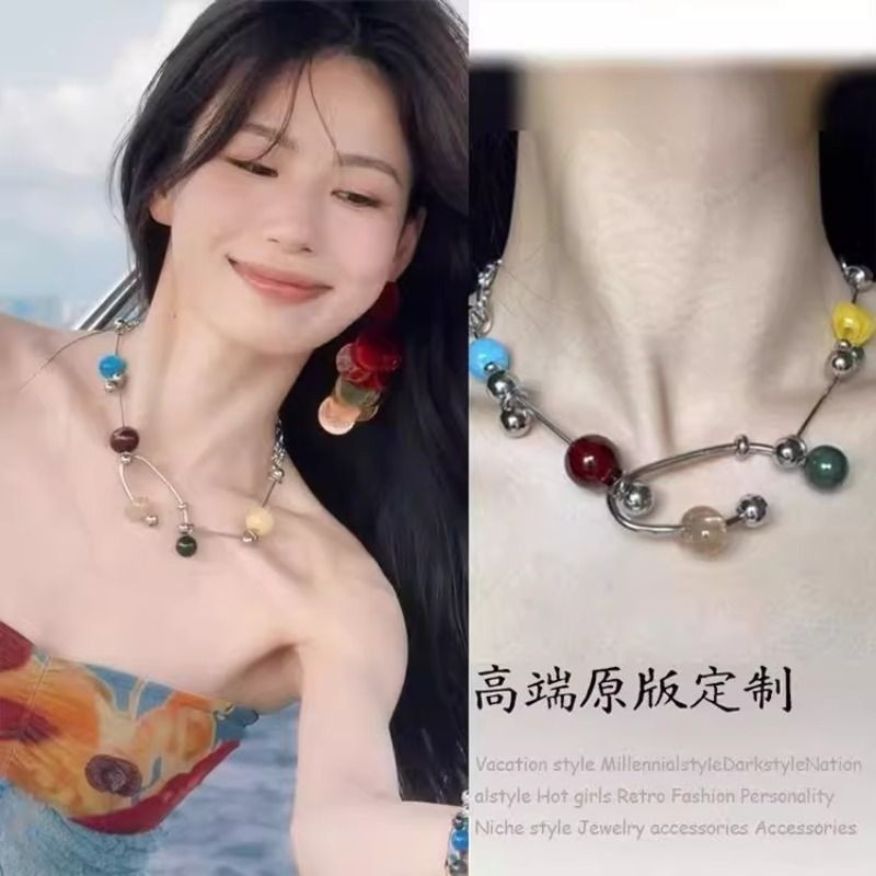 新款2025彩虹交响乐彩色撞色串珠项链个性小众设计高级感配饰颈链