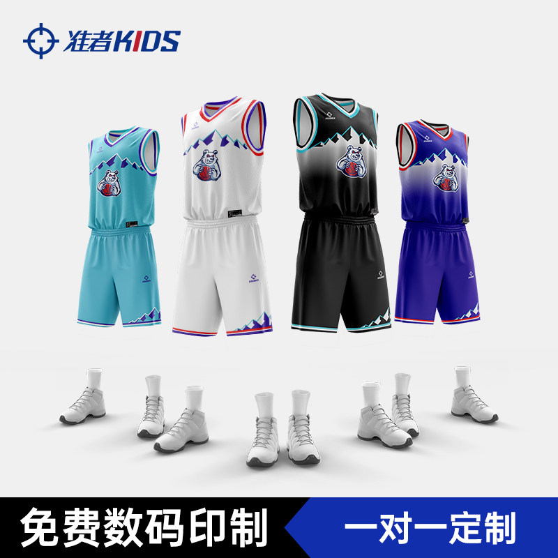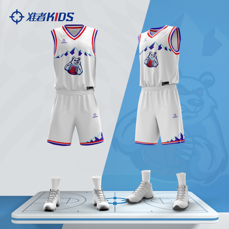 准者儿童篮球服套装数码印比赛队服学生表演球服10A抗菌训练服装