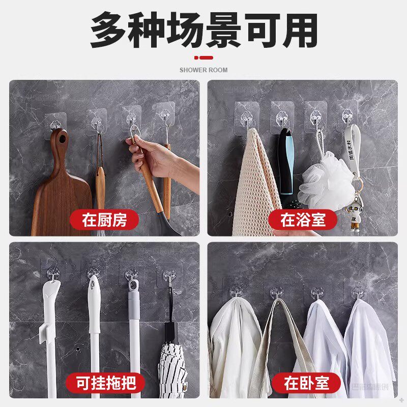 挂钩免打孔强力承重透明无痕粘胶贴墙上粘钩厨房卫生间免钉挂衣钩
