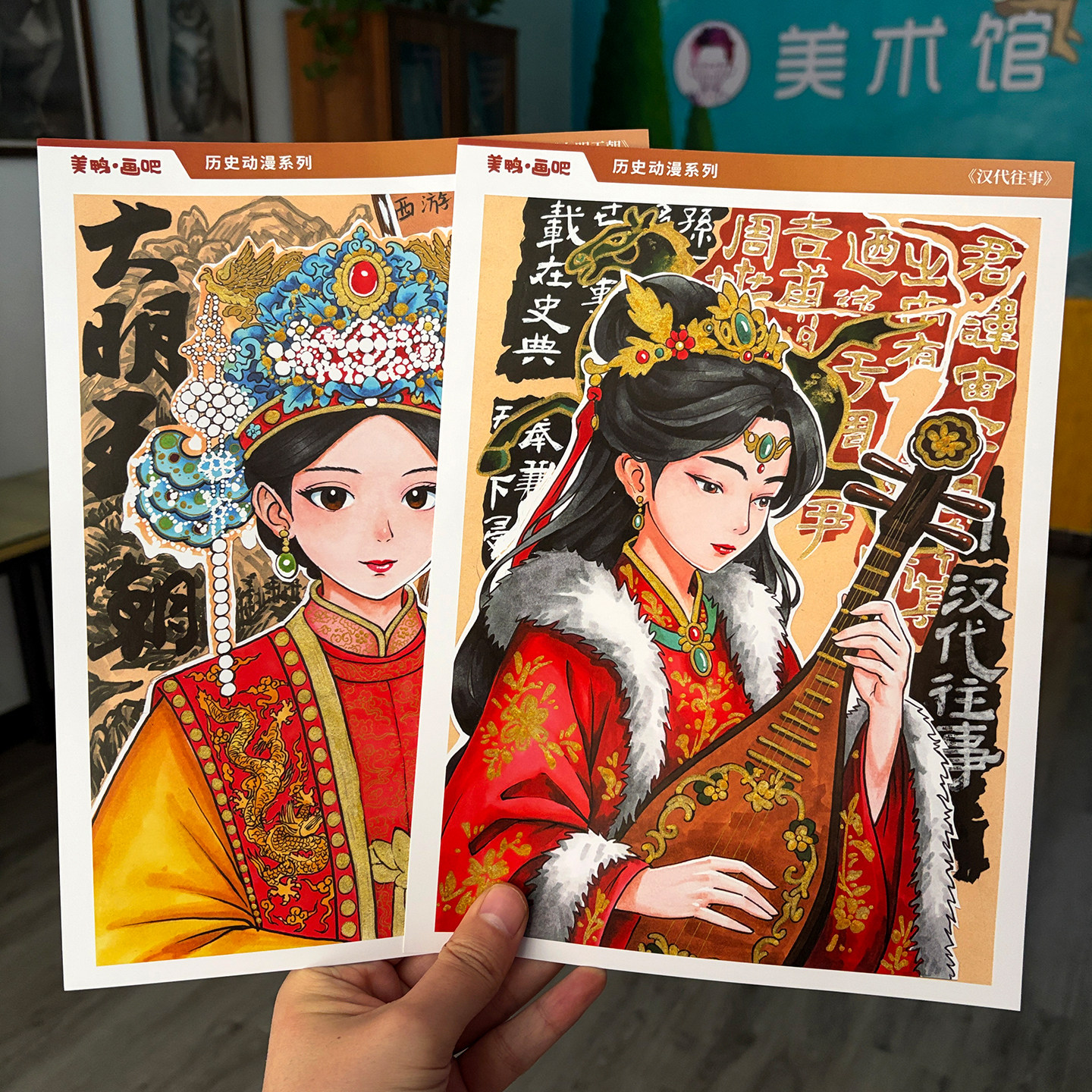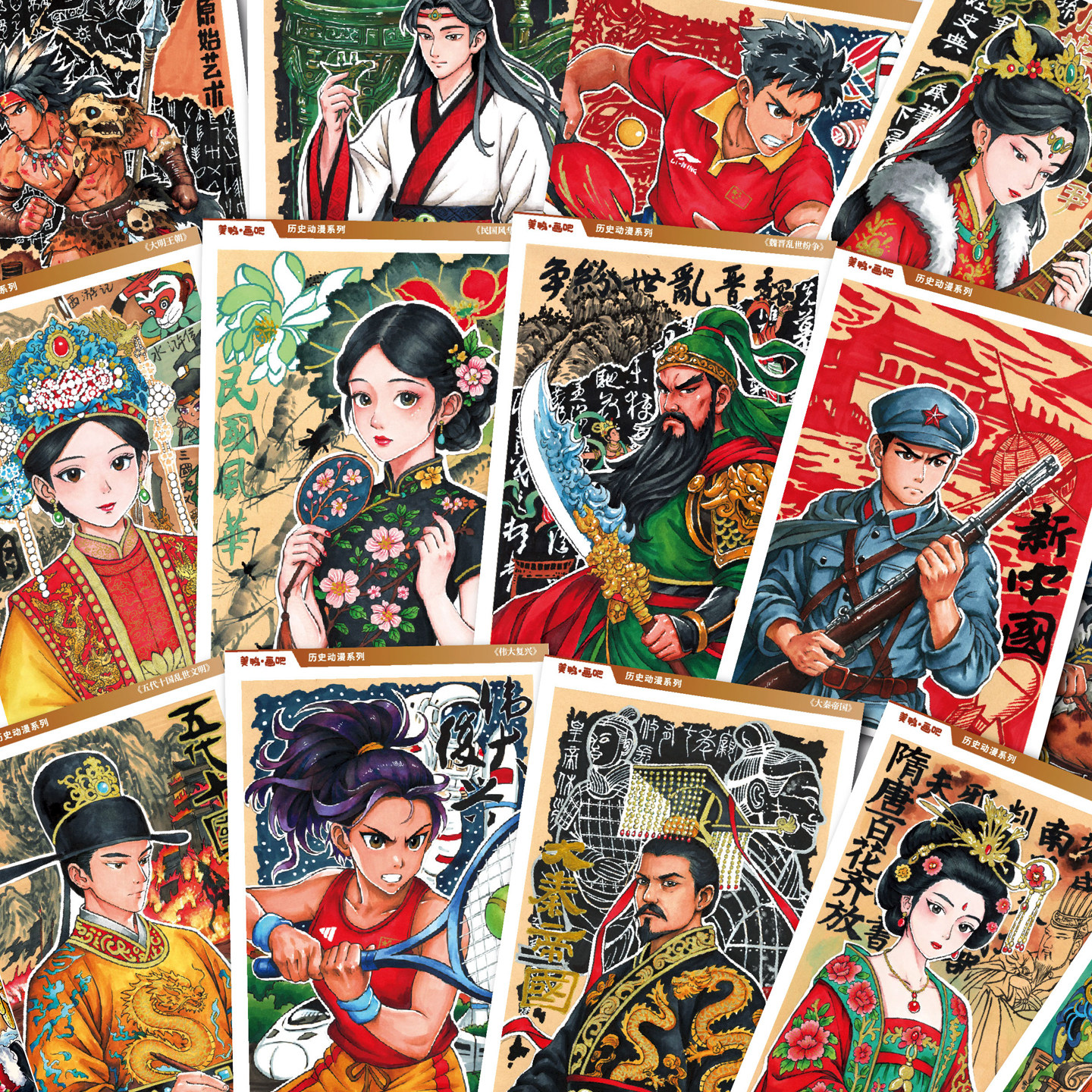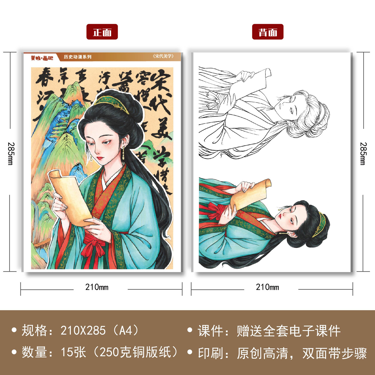 原创少儿美术历史动漫人物临摹卡中高级复古绘画A4高清手绘送课件