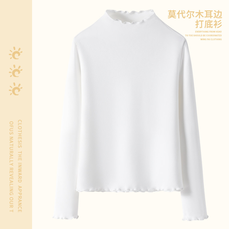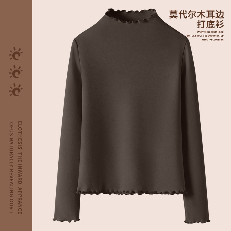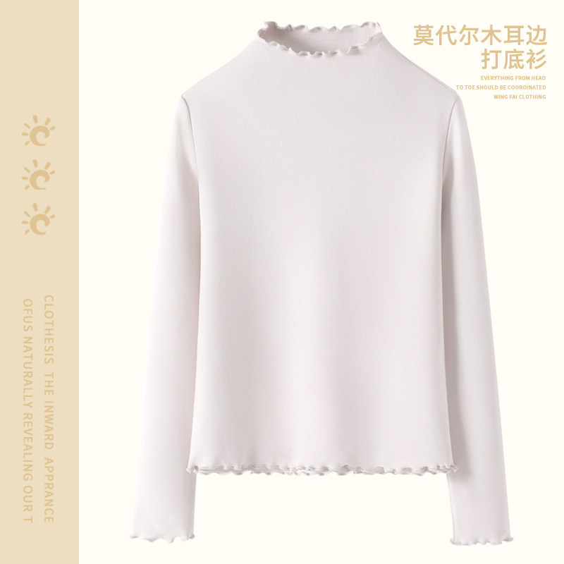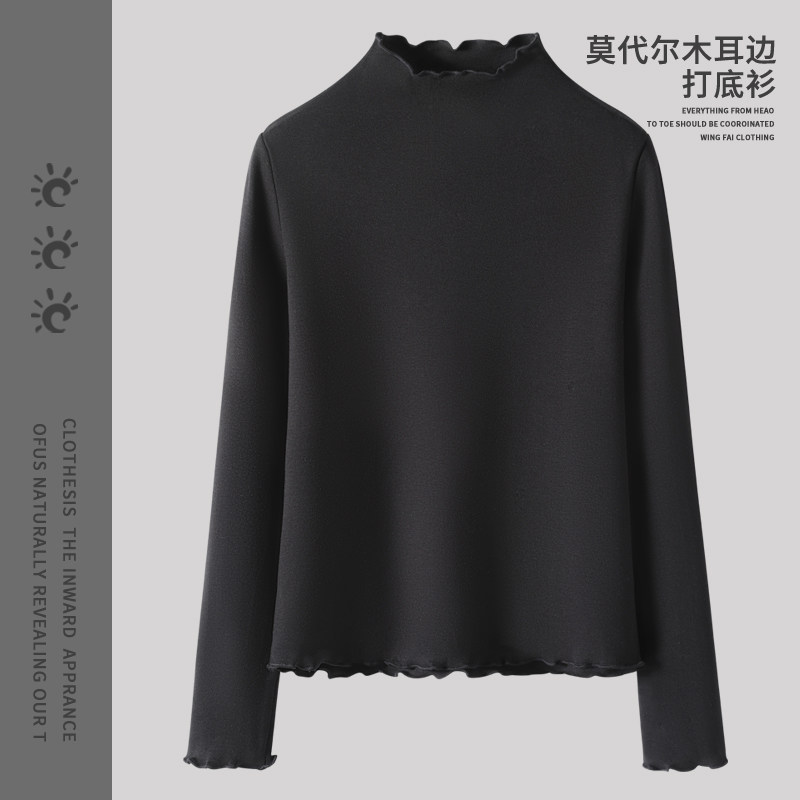 widelia十三行老板娘冬正肩小立领半高领打底衫弹力长袖T恤女9585