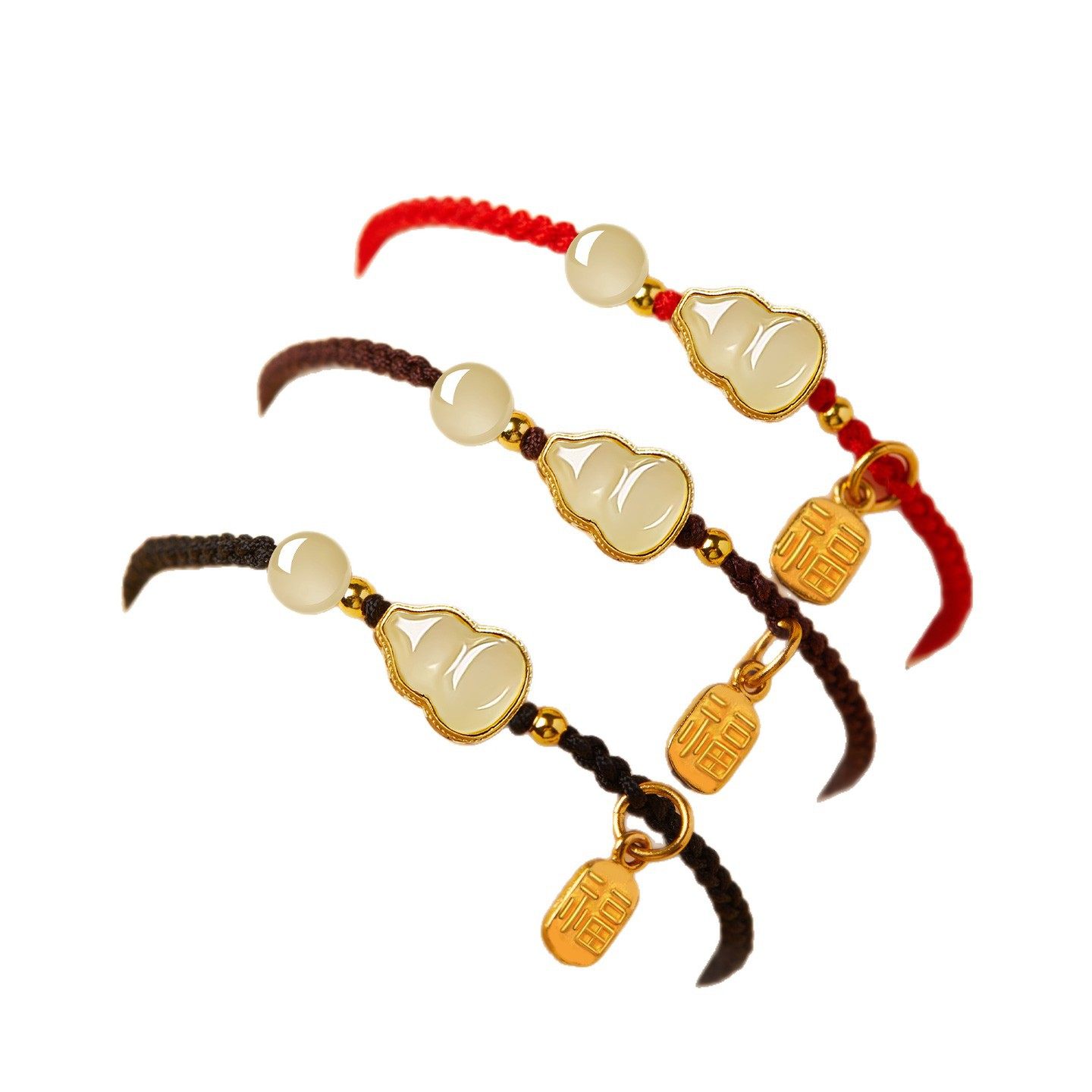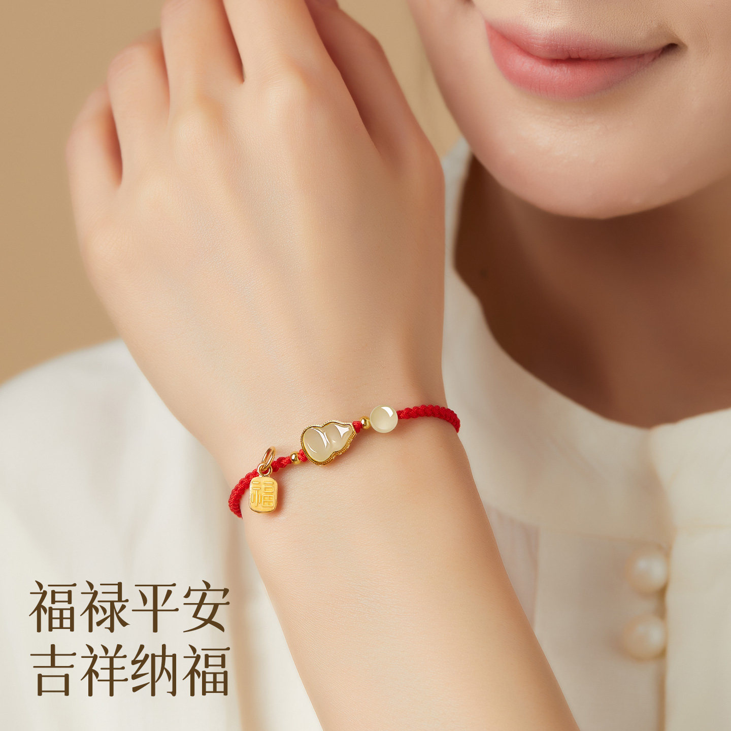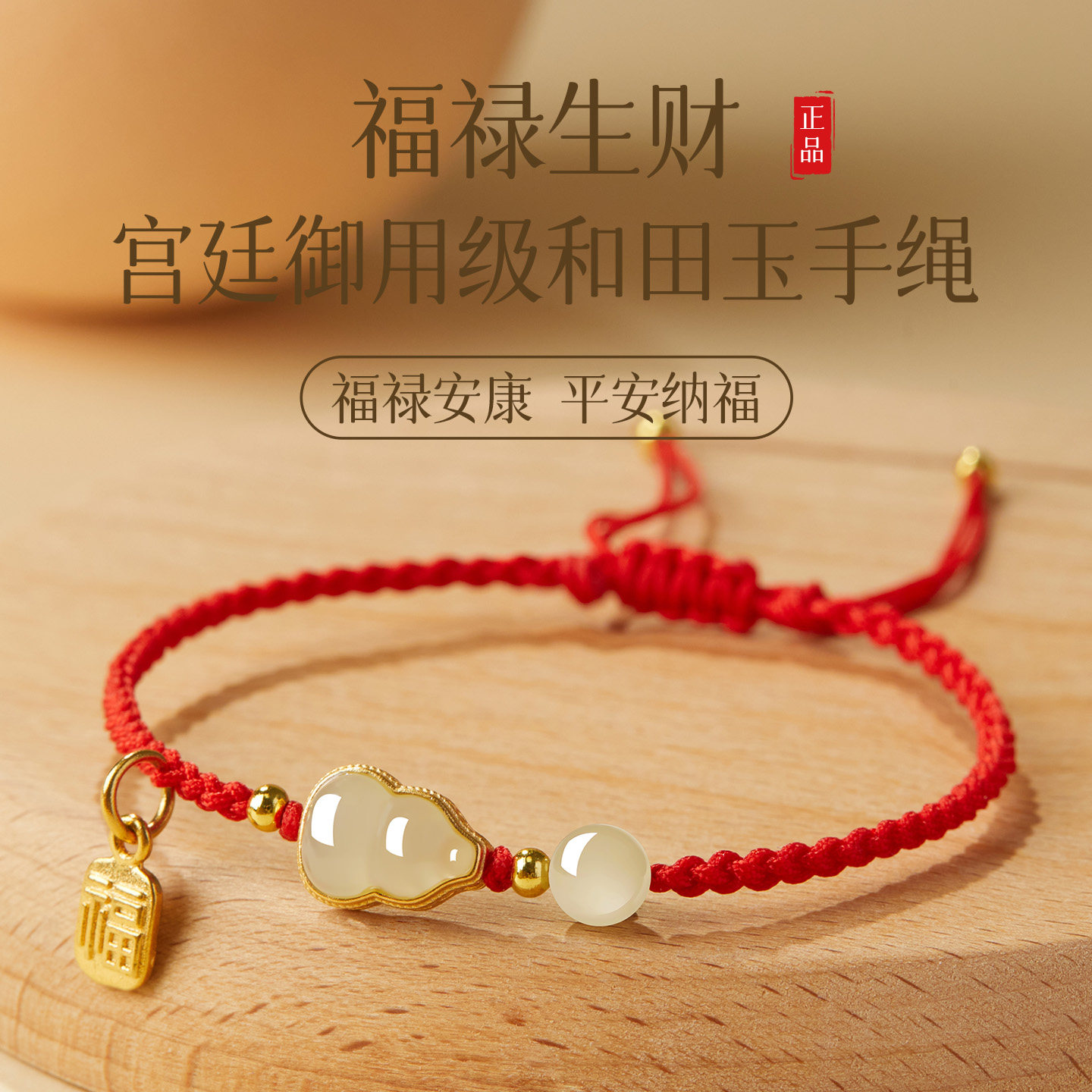 2026马年本命年红手绳女款好运蜜蜡和田玉葫芦手链手工编织绳脚链