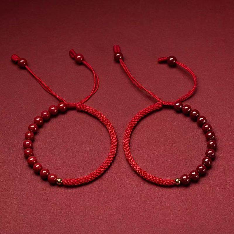 朱砂手链手绳女本命年红绳情侣平安礼物玉米结脚链饰品编织转运珠
