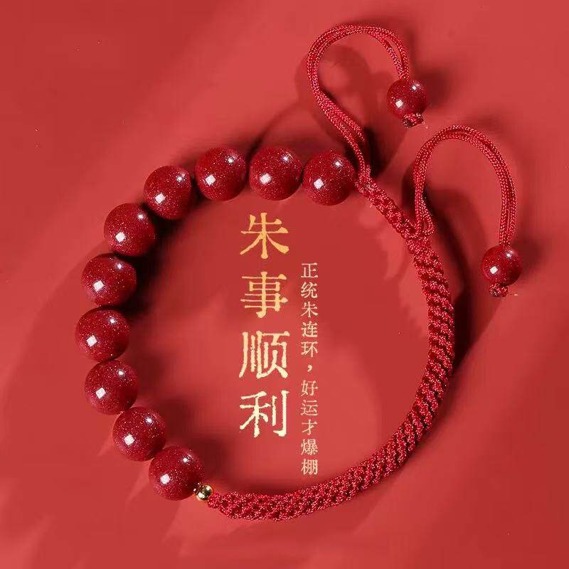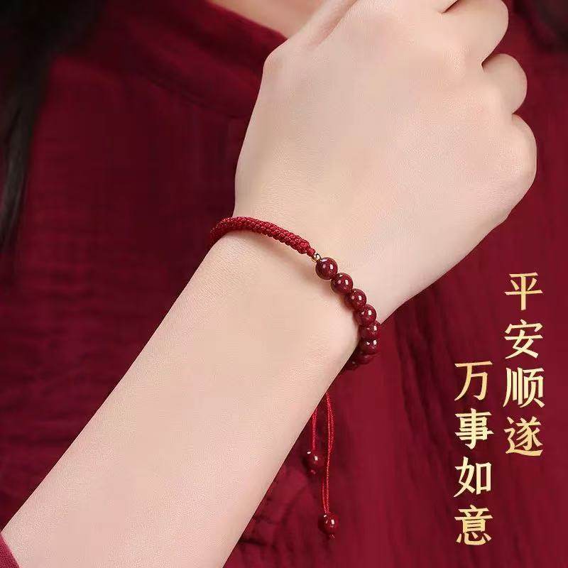 普陀山朱砂手串珠蛇年手链本命年普贤护身手镯官方旗舰店正品