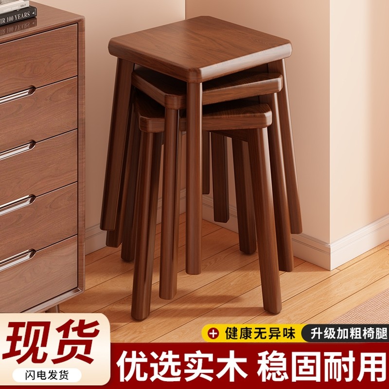 实木餐椅家用可叠放凳子新款餐桌备用椅子化妆梳妆台软包餐厅家居