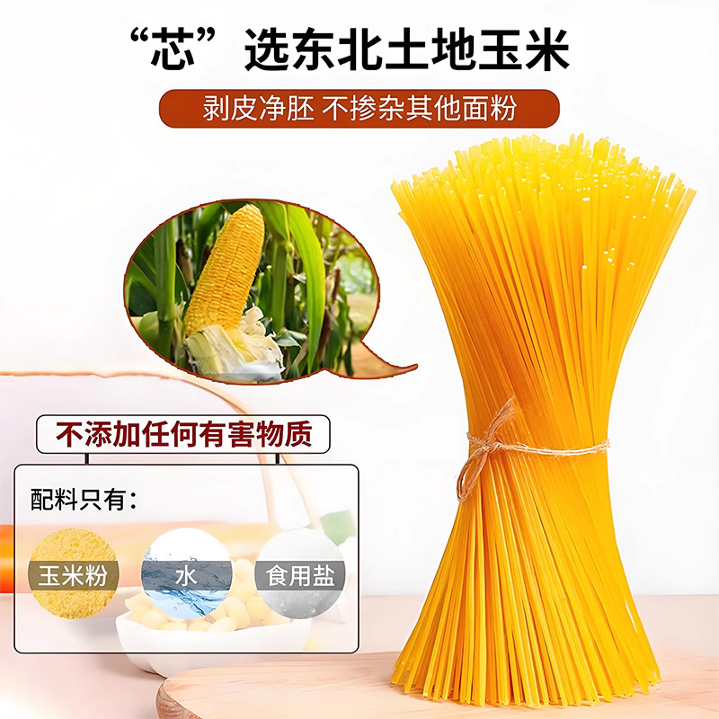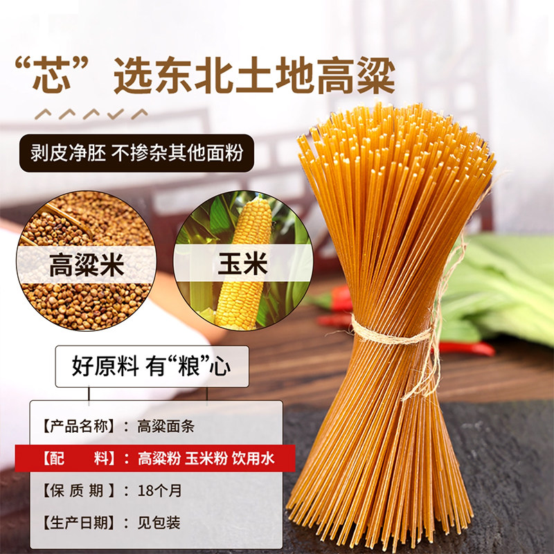 东北纯玉米面条0脂肪黑米高粱面条粗粮挂面正宗黄面条无添加低脂