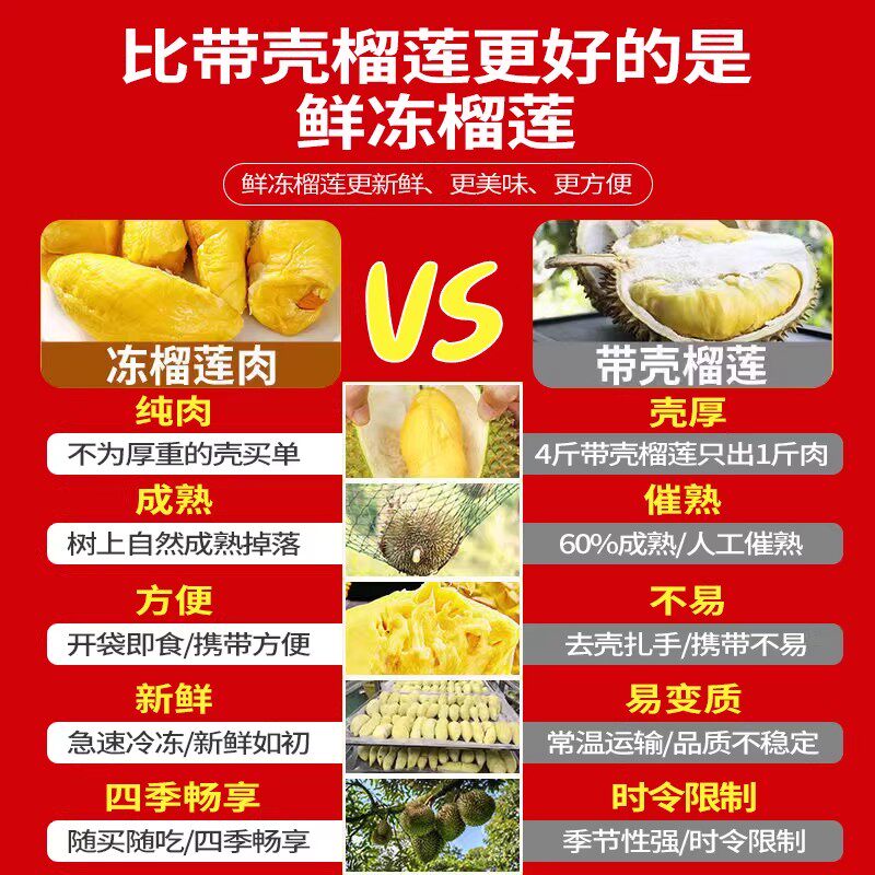 榴莲肉冷冻无核泰国金枕头冻榴莲冰冻肉冻肉进口水果商用树熟带壳