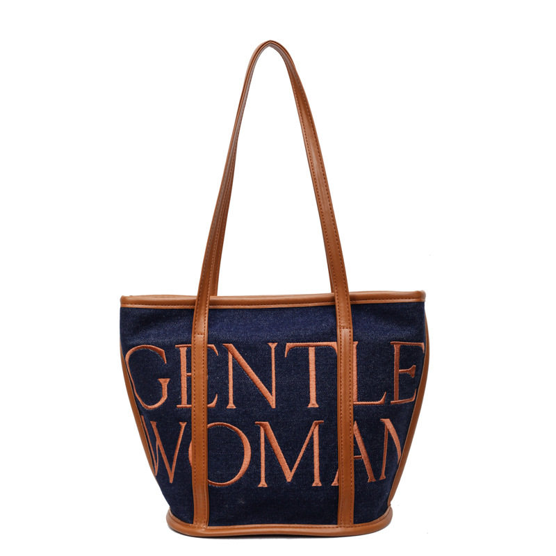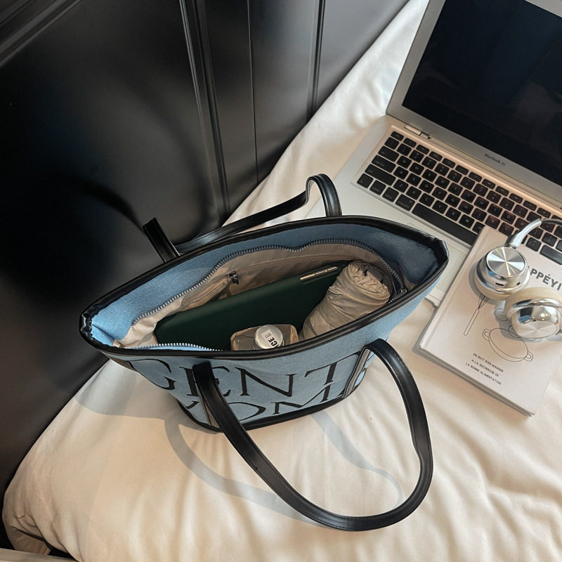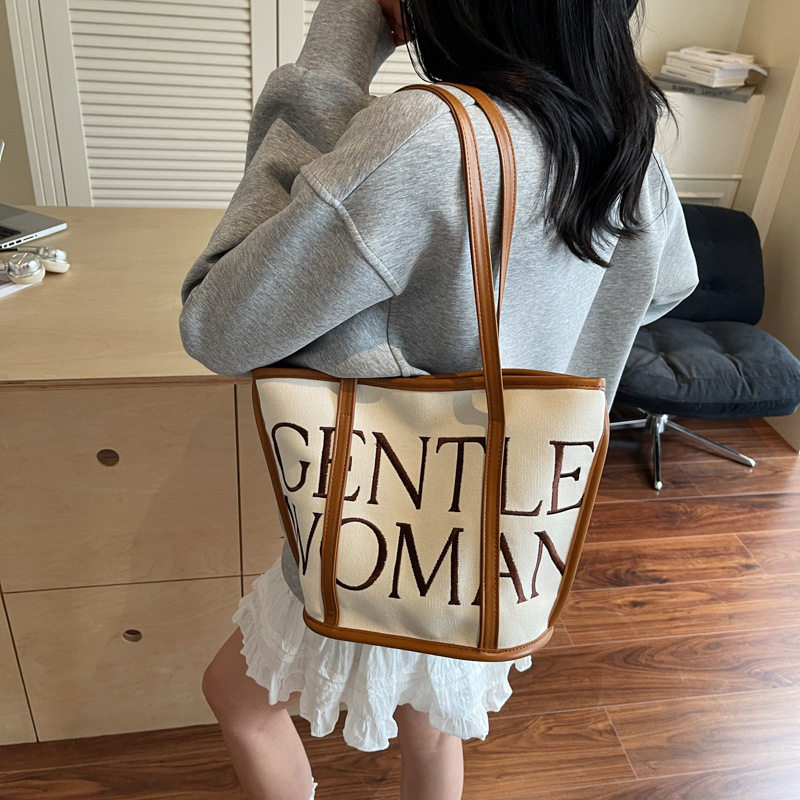 稻草人帆布包包女2025新款大容量刺绣单肩包休闲百搭字母托特包