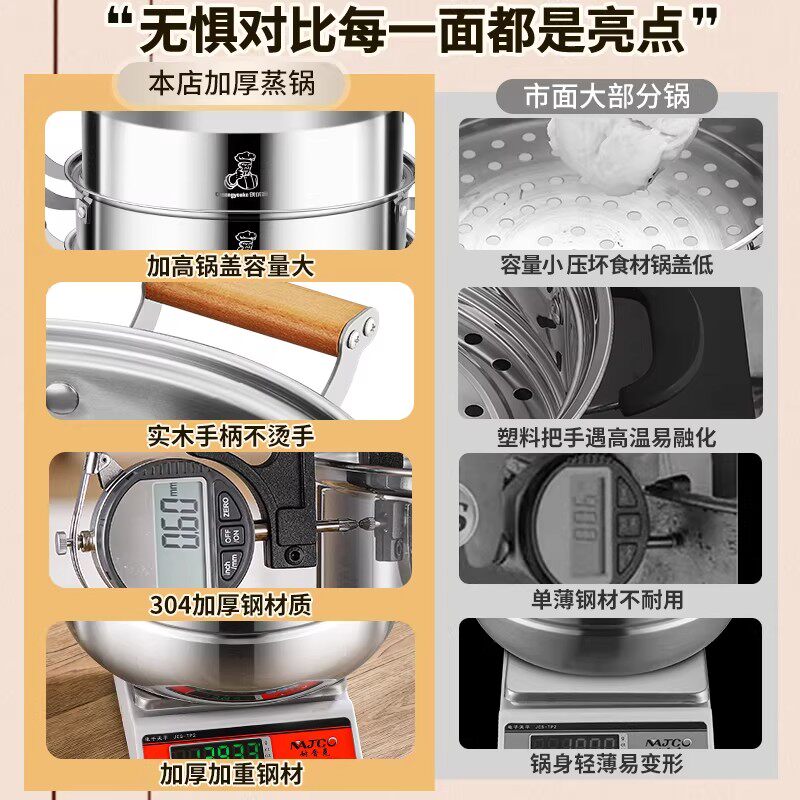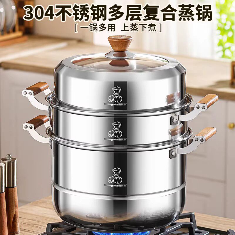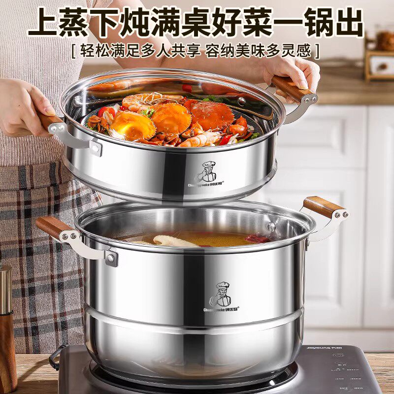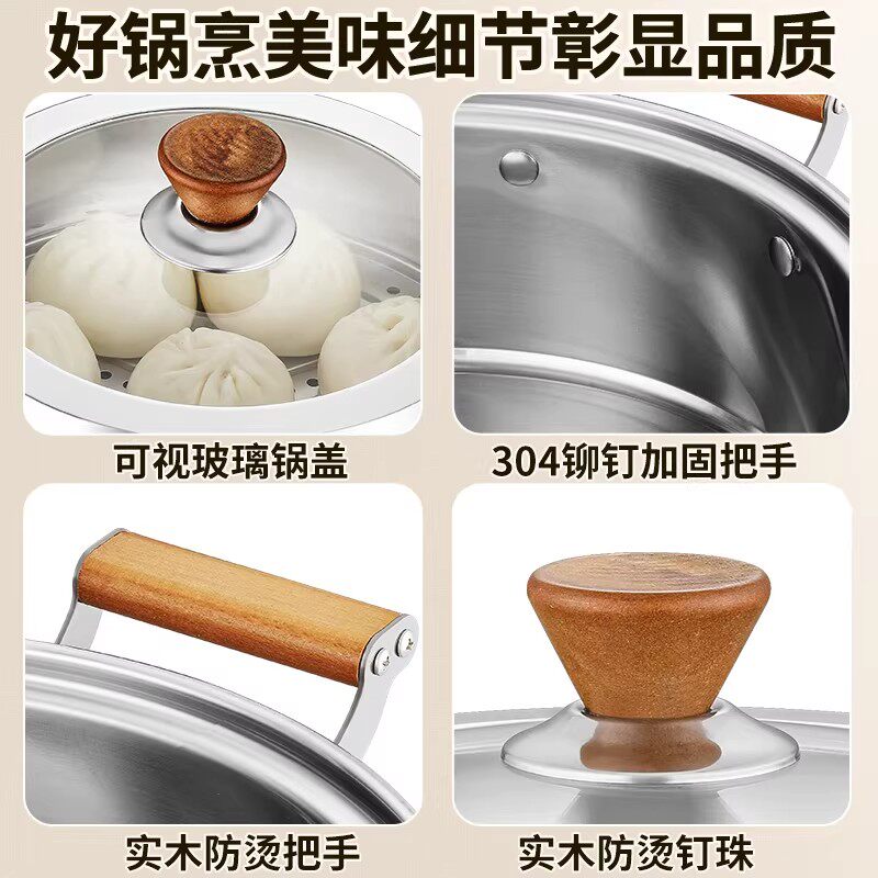 创优客304特厚不锈钢蒸锅特厚汤锅食品级煮锅不挑炉家用一体加厚