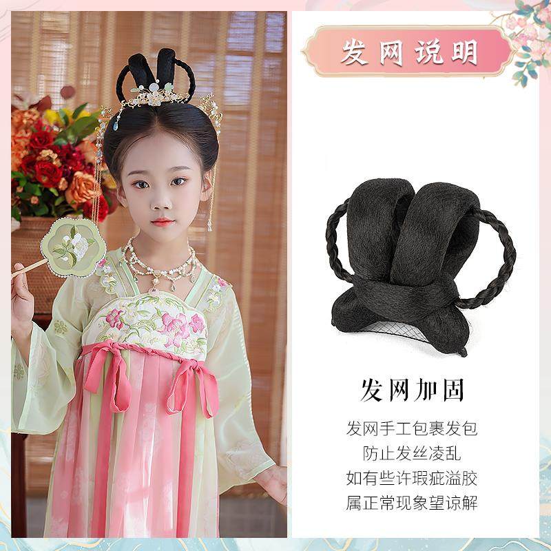 儿童汉服假发蝴蝶结发髻造型古装假发包女童汉服假发头饰假发古风