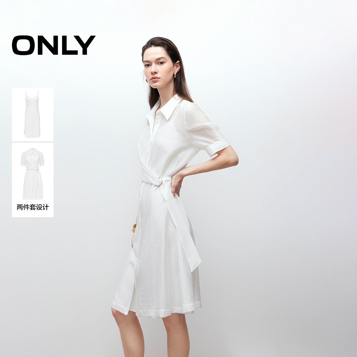 ONLY夏季清凉莱赛尔感收腰裙子内里吊带套装衬衫裙连衣裙