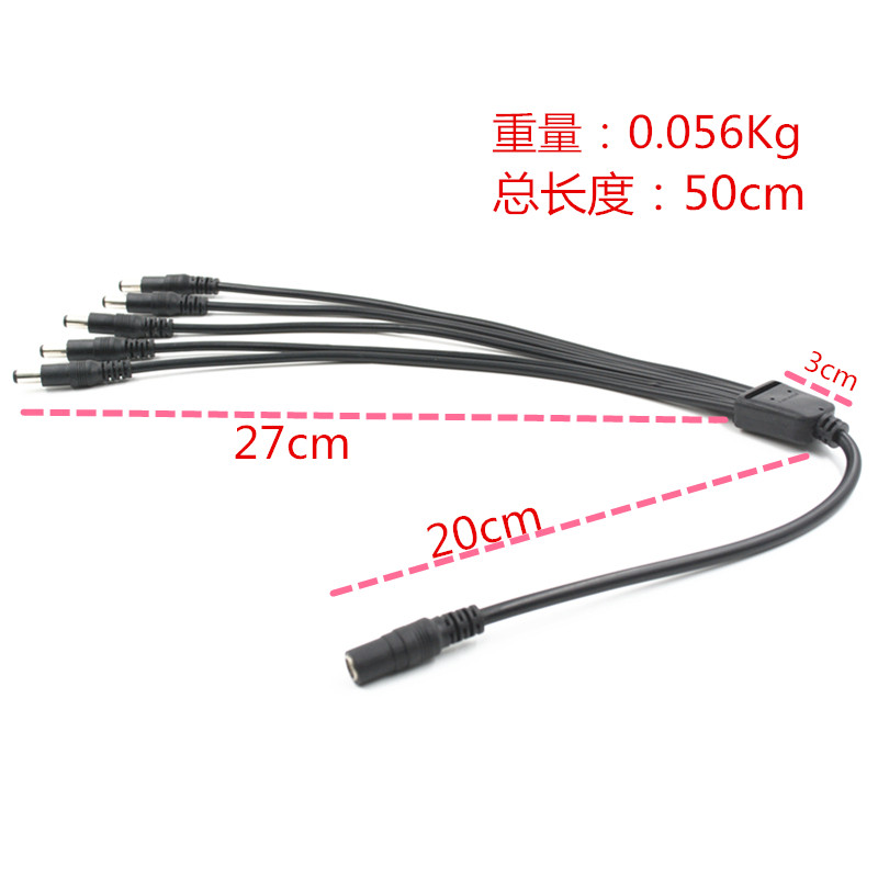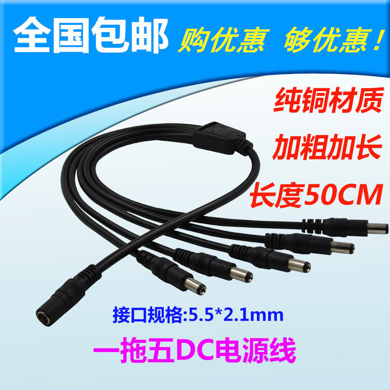 0.75平一分五加粗加长加厚纯铜监控DC电源延长线1拖5探头配件器材