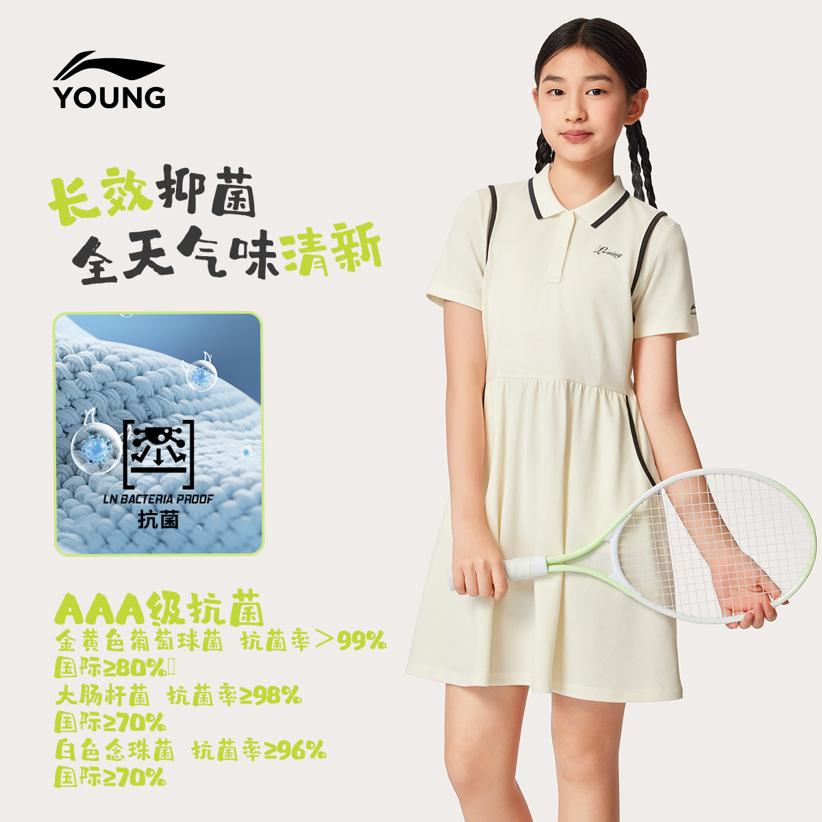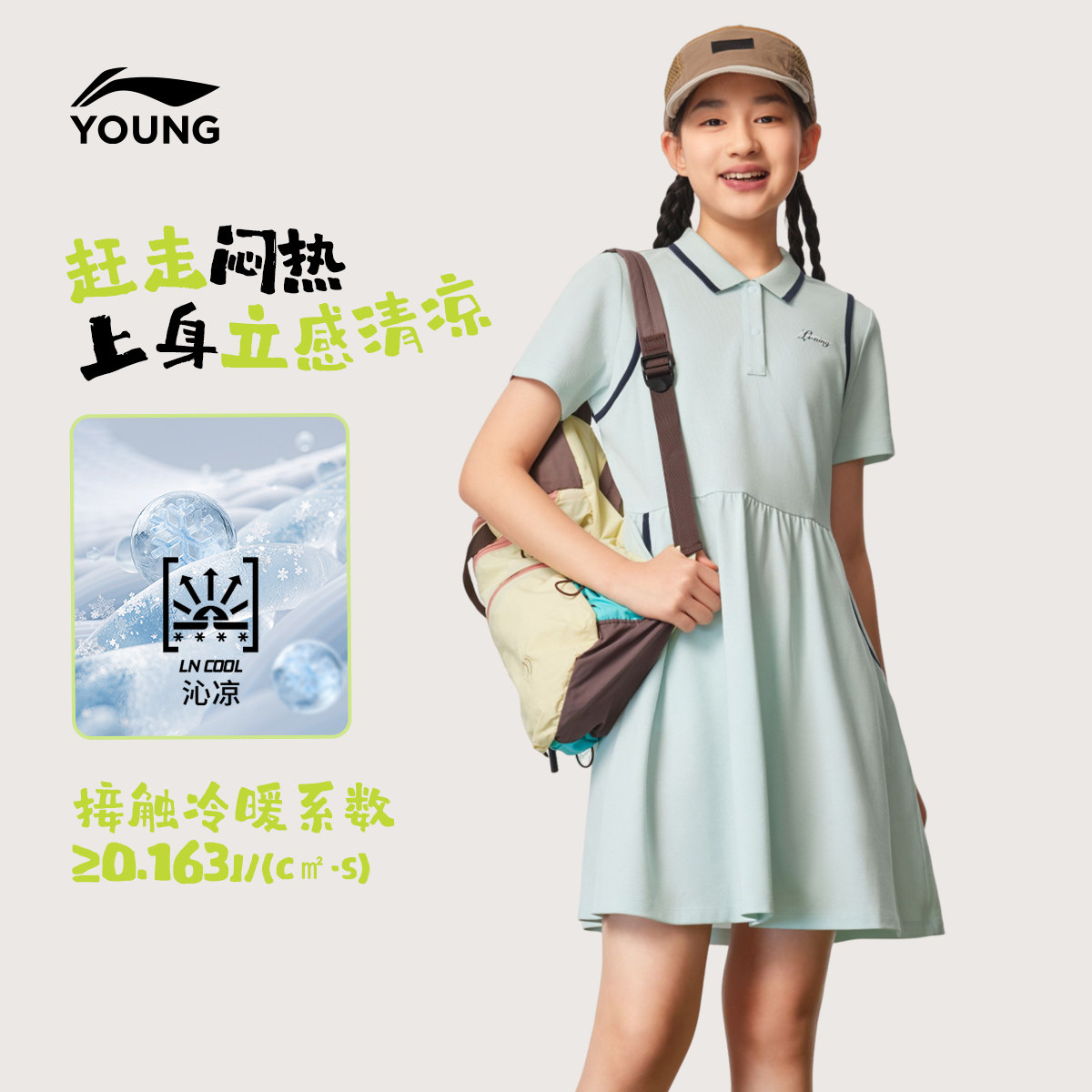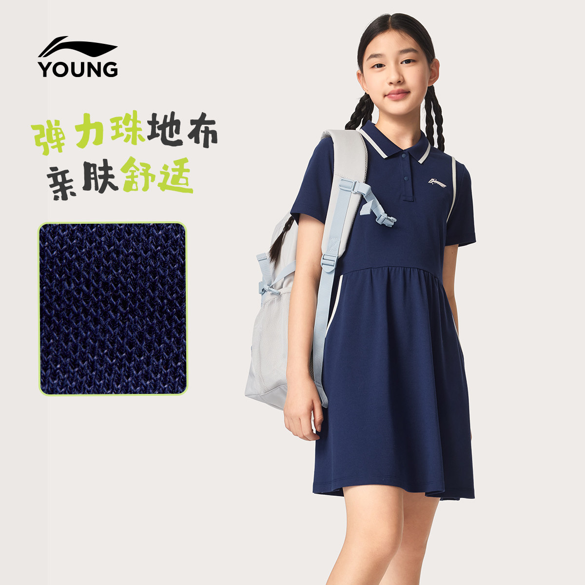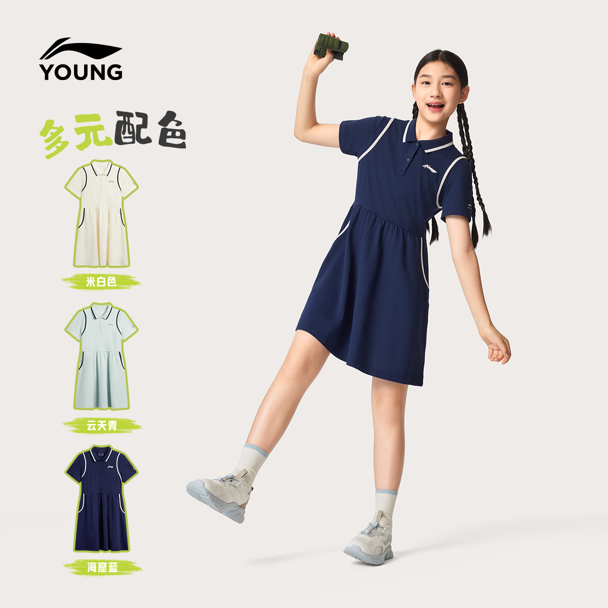 李宁童装连衣裙女小大童26新款运动生活系列夏季休闲翻领梭织童装