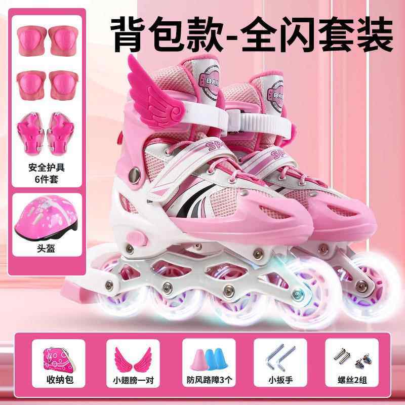 溜冰鞋儿童全套装男女旱冰轮滑鞋直排轮初学3-5-6-8-10岁可调闪光