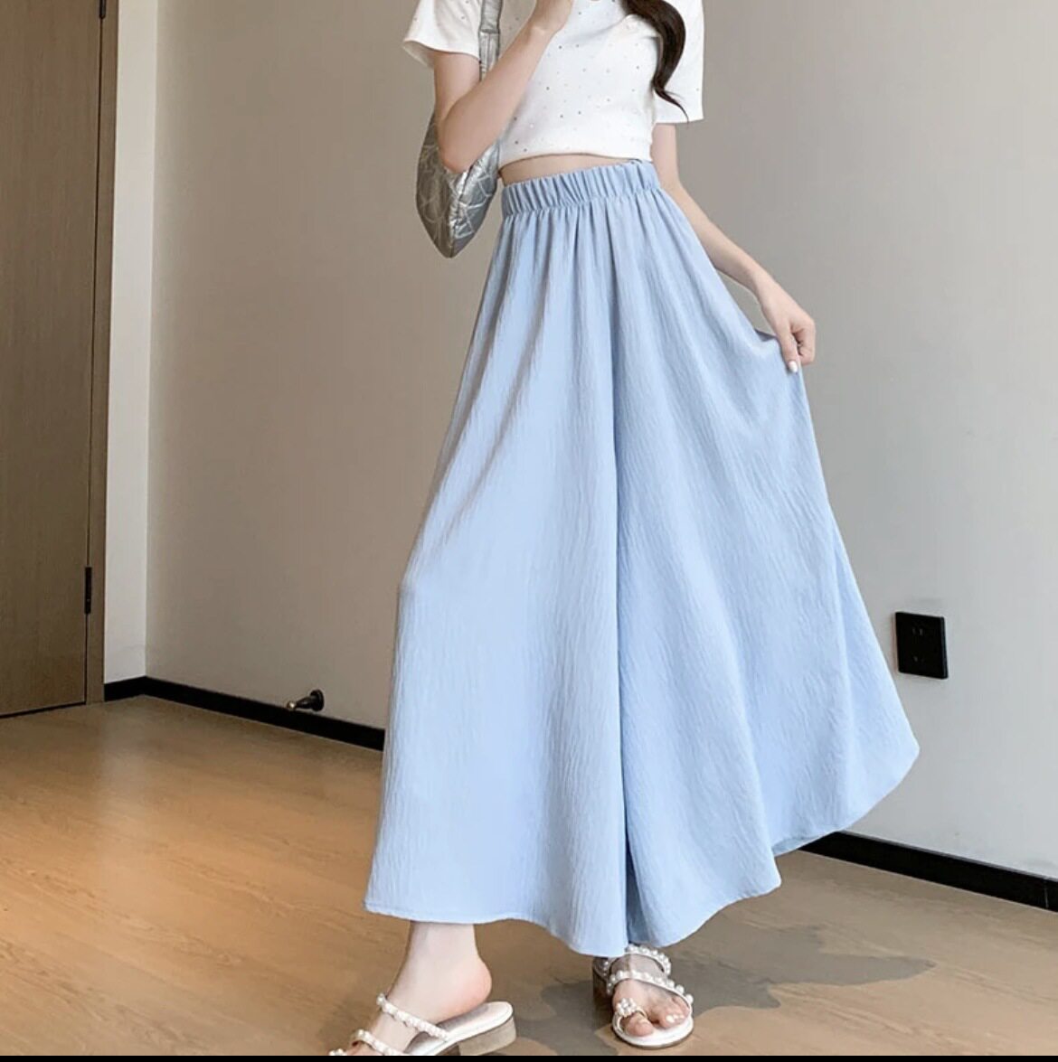 半身裙裤女夏季薄款高级感A字大摆高腰褶皱垂感冰丝阔腿裤八分裤