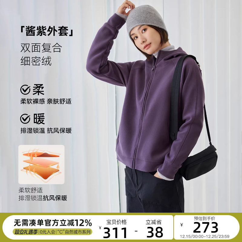 CLOUDSPACE【酱紫外套】连帽短款复合细密绒秋冬运动外套上衣女
