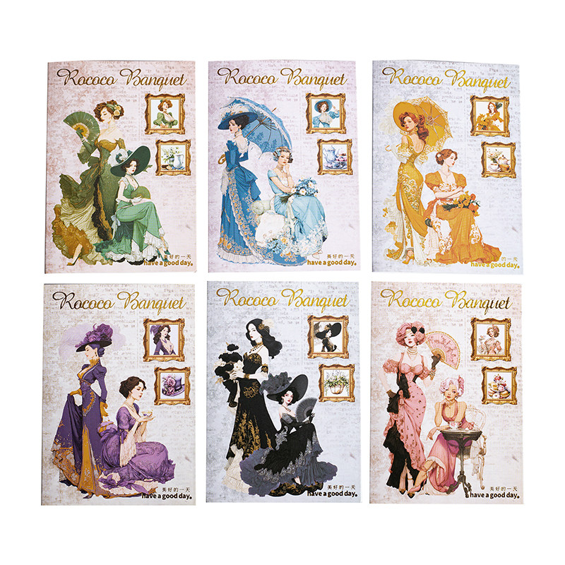 M|洛可可晚宴贴纸 欧式宫廷复古华丽晚礼服人物pet手账贴20张入