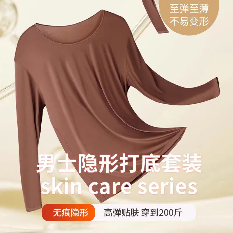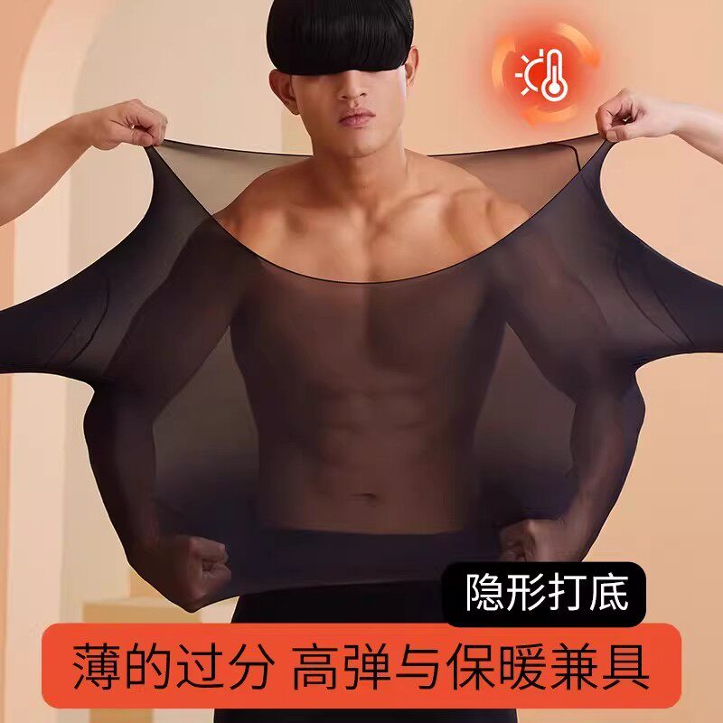 超薄无痕保暖内衣男士薄款肌底美肤37度恒温发热大码秋衣秋裤套装