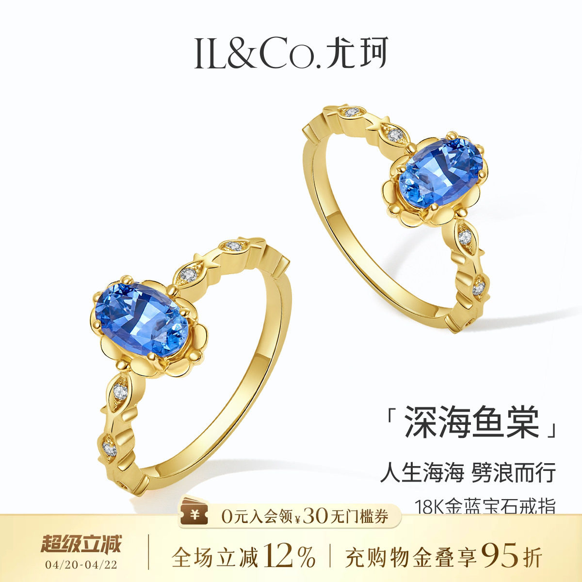 ILCO尤珂「深海鱼棠」18k金镶嵌天然蓝宝石戒指复古轻奢彩宝女款