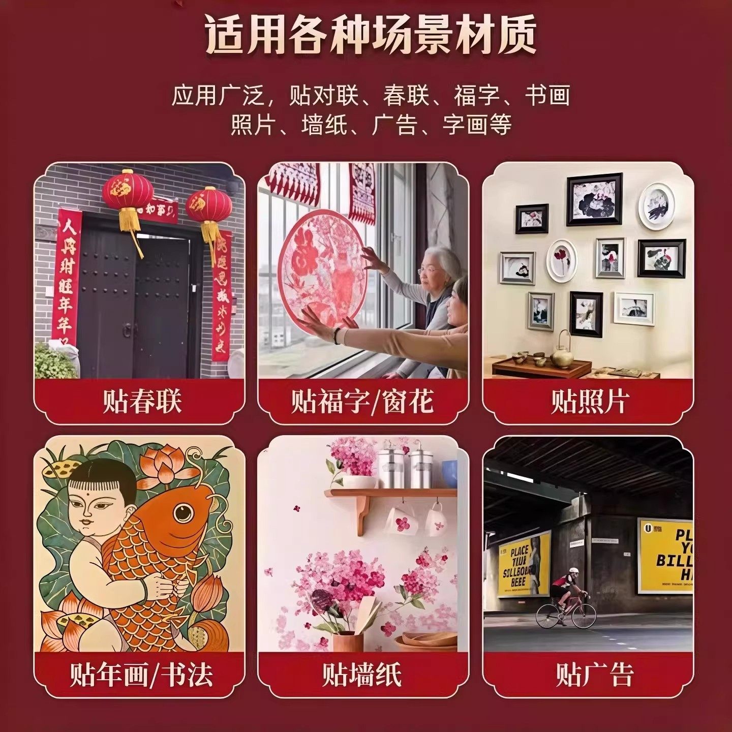 新年网格对联双面胶贴春联婚庆婚房高粘度透明胶易撕不残胶固定胶