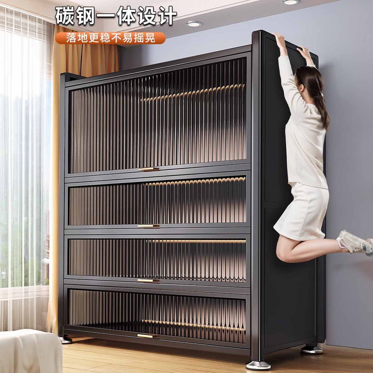加厚钢制鞋柜门口家用一体靠墙多层储物柜入户落地大容量防尘鞋架