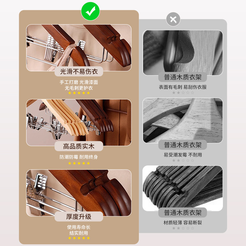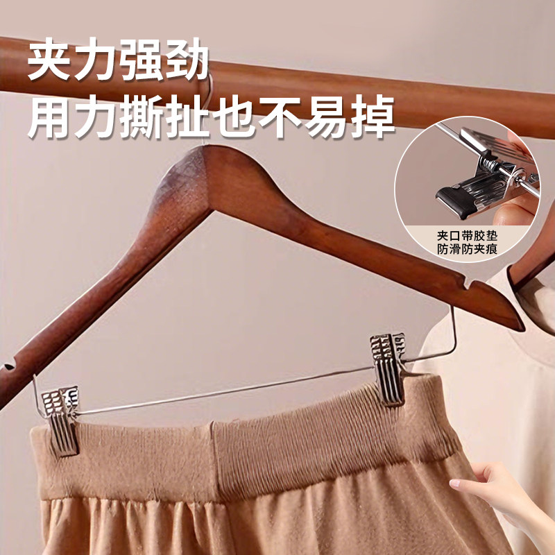 日本实木带夹子衣架家用防滑挂衣套装晾衣架防肩角不鼓包裤夹原木