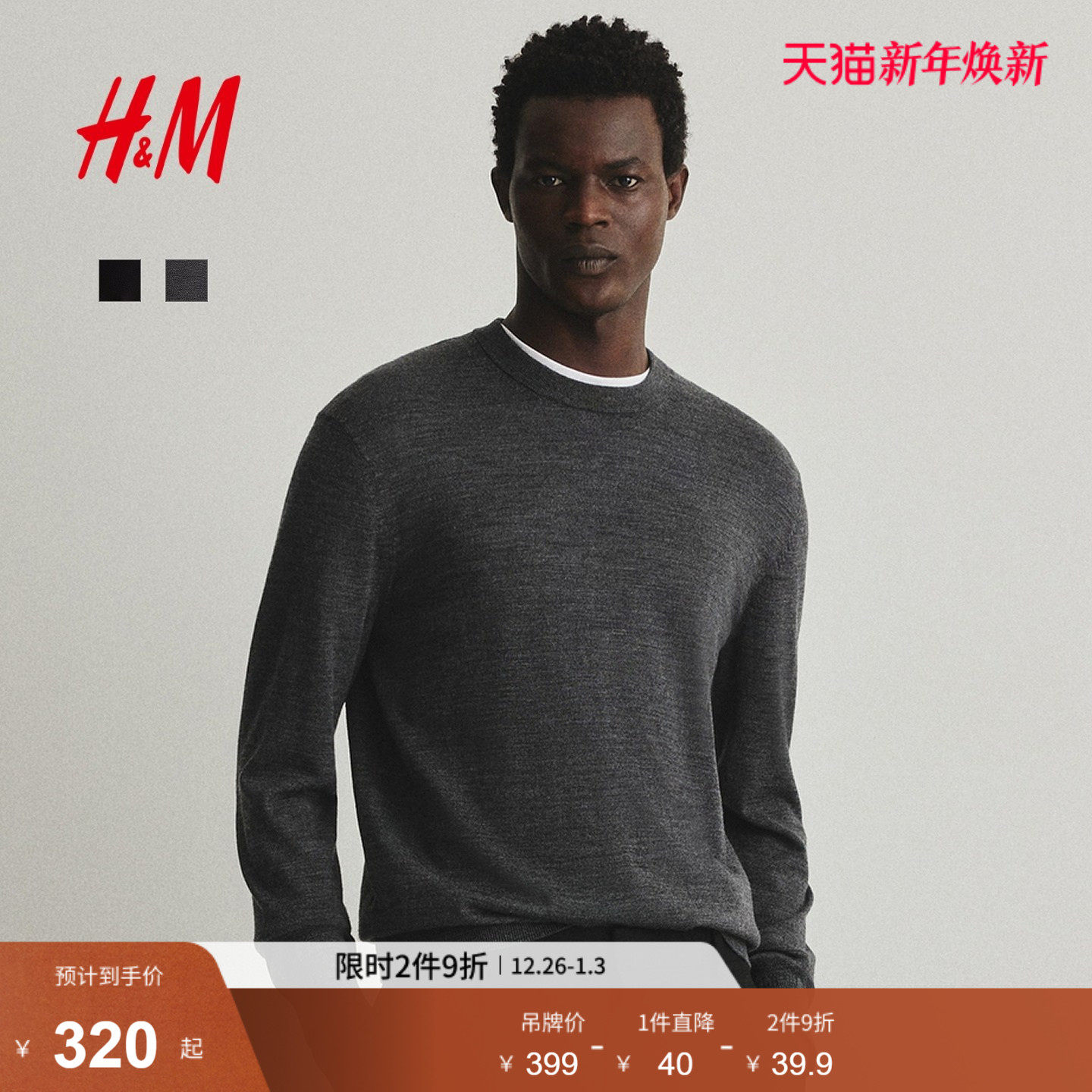 HM男装针织衫2025冬季新款圆领羊毛毛衣保暖打底衫套衫1287985