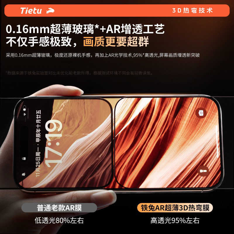 铁兔零感膜Ultra【AR增透抗反射3D热弯全覆盖】适用苹果17Promax钢化膜iPhone16promax手机保护贴膜UAR防摔