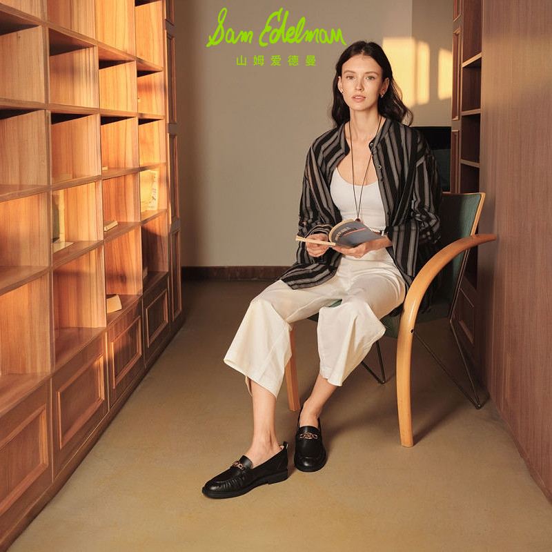 SAM EDELMAN山姆爱德曼春褶皱乐福复古平底牛皮单鞋女EBBA