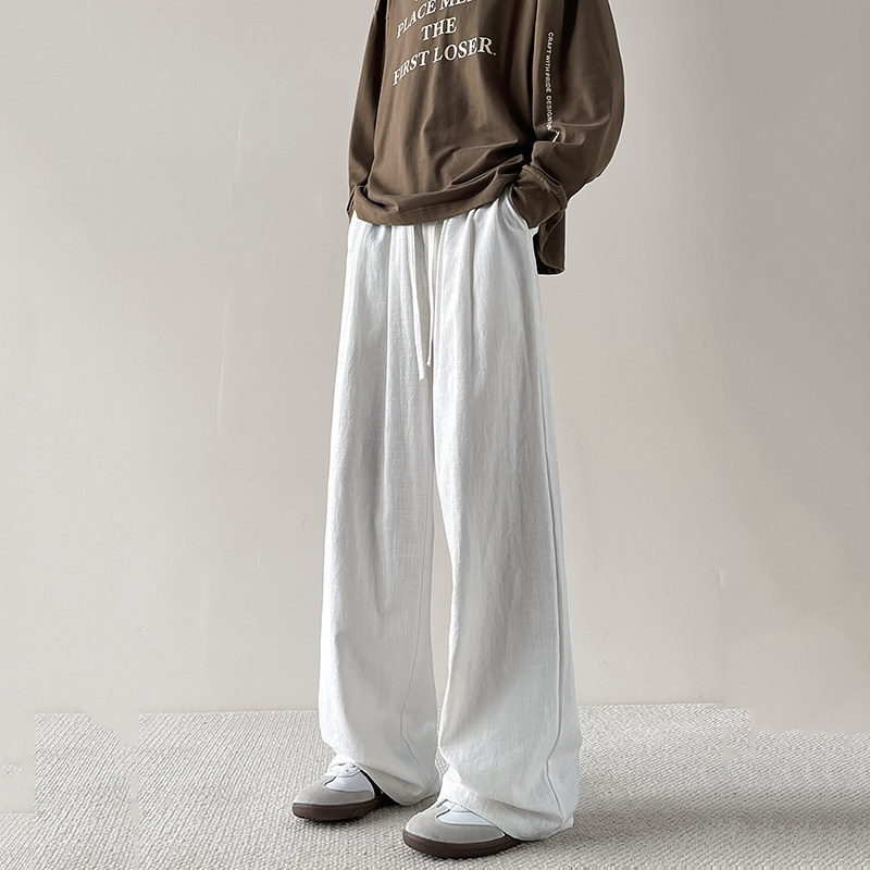 回力纯棉裤子男春秋季2025新款宽松直筒卫裤男生仿棉麻运动休闲裤