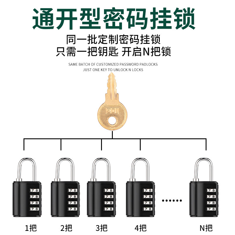 密码锁挂锁带钥匙家用通开学生宿舍行李箱储物柜健身房小型柜子锁