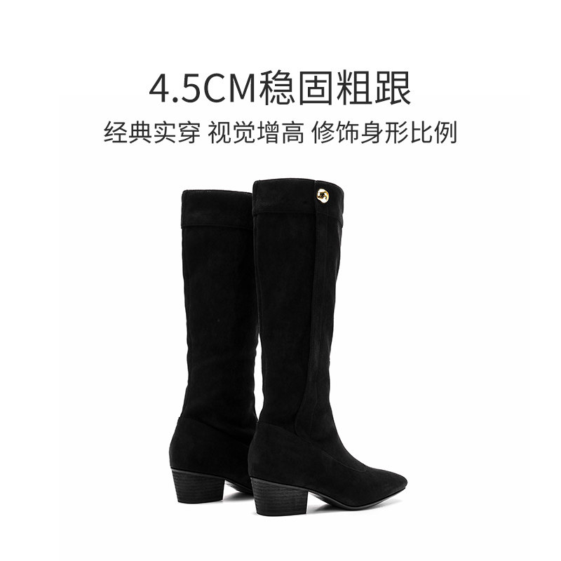 哈森粗跟高筒弹力靴女秋冬新款长靴套筒女靴瘦瘦靴HWA240158