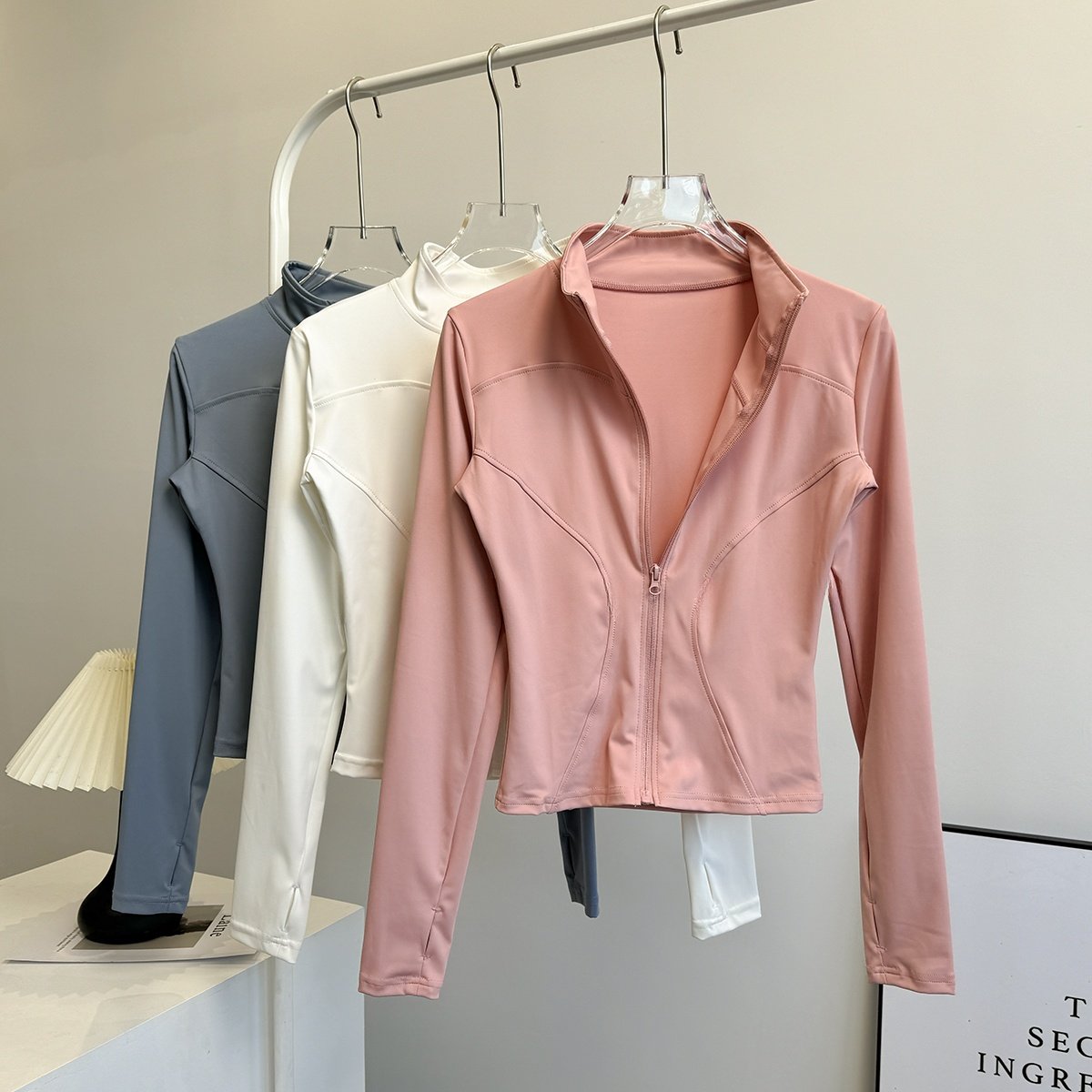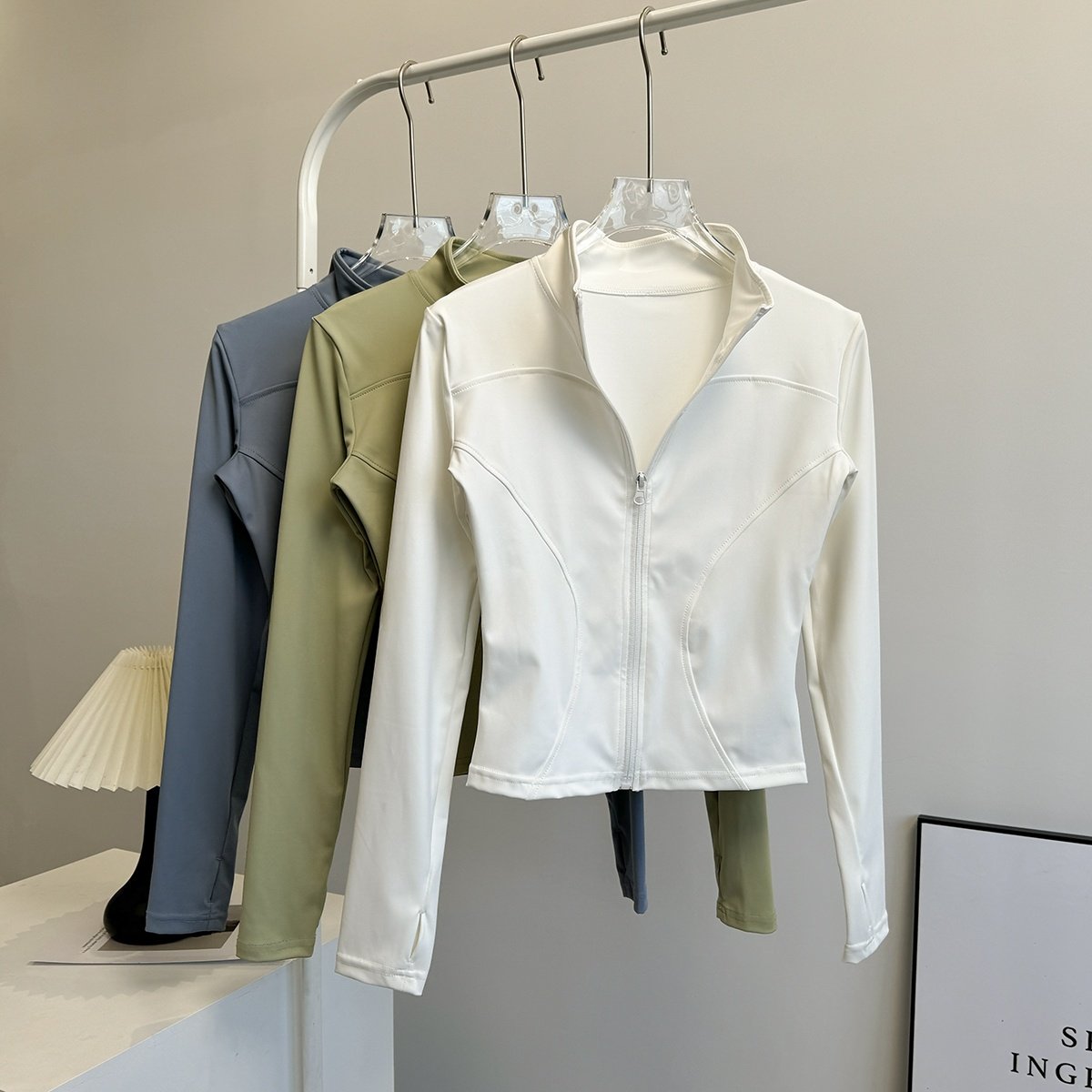 瑜伽服女跑步健身上衣紧身专业运动长袖外套速干立领拉链开衫高弹