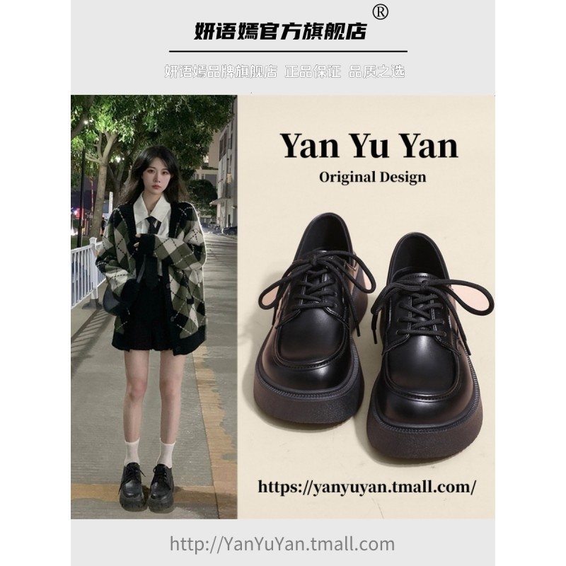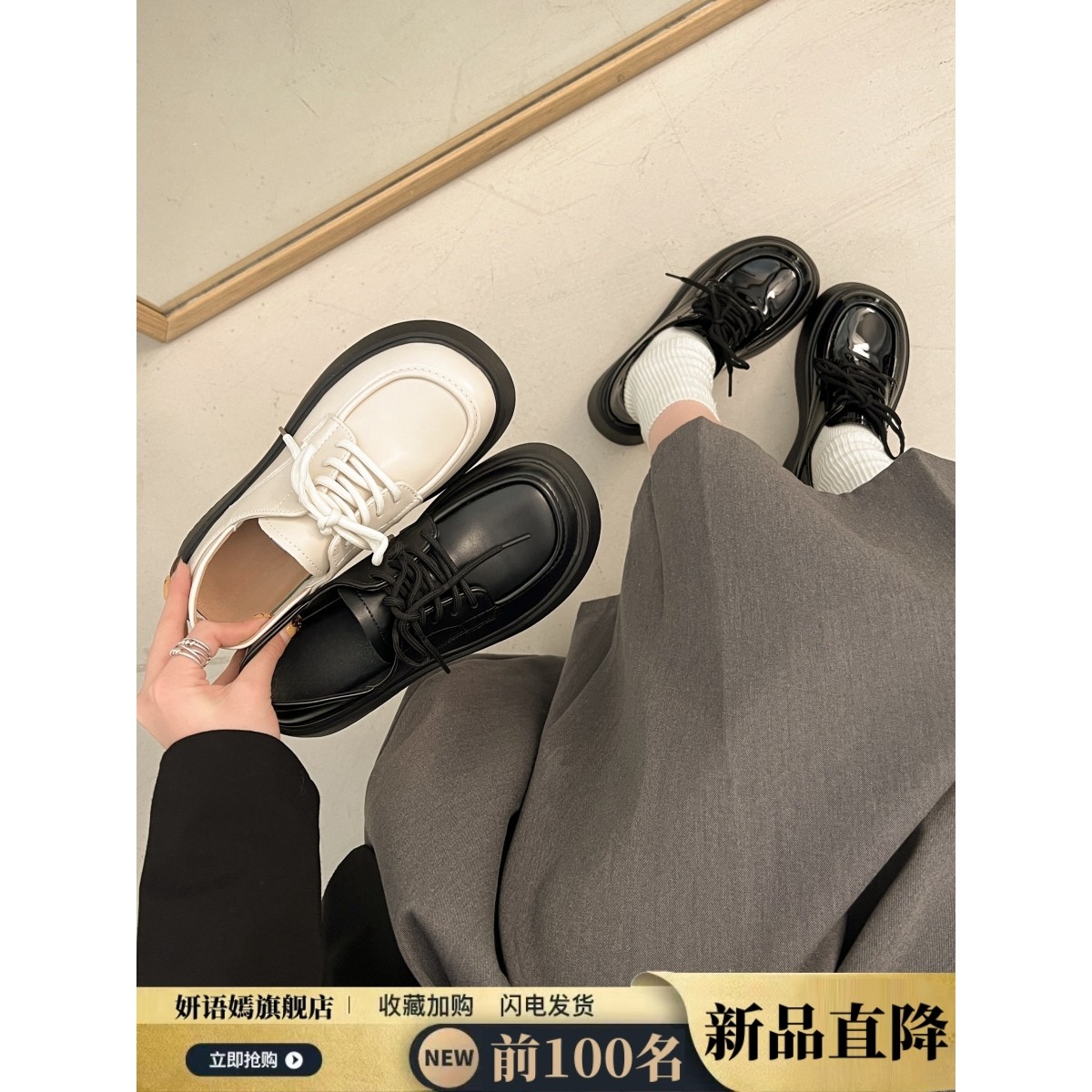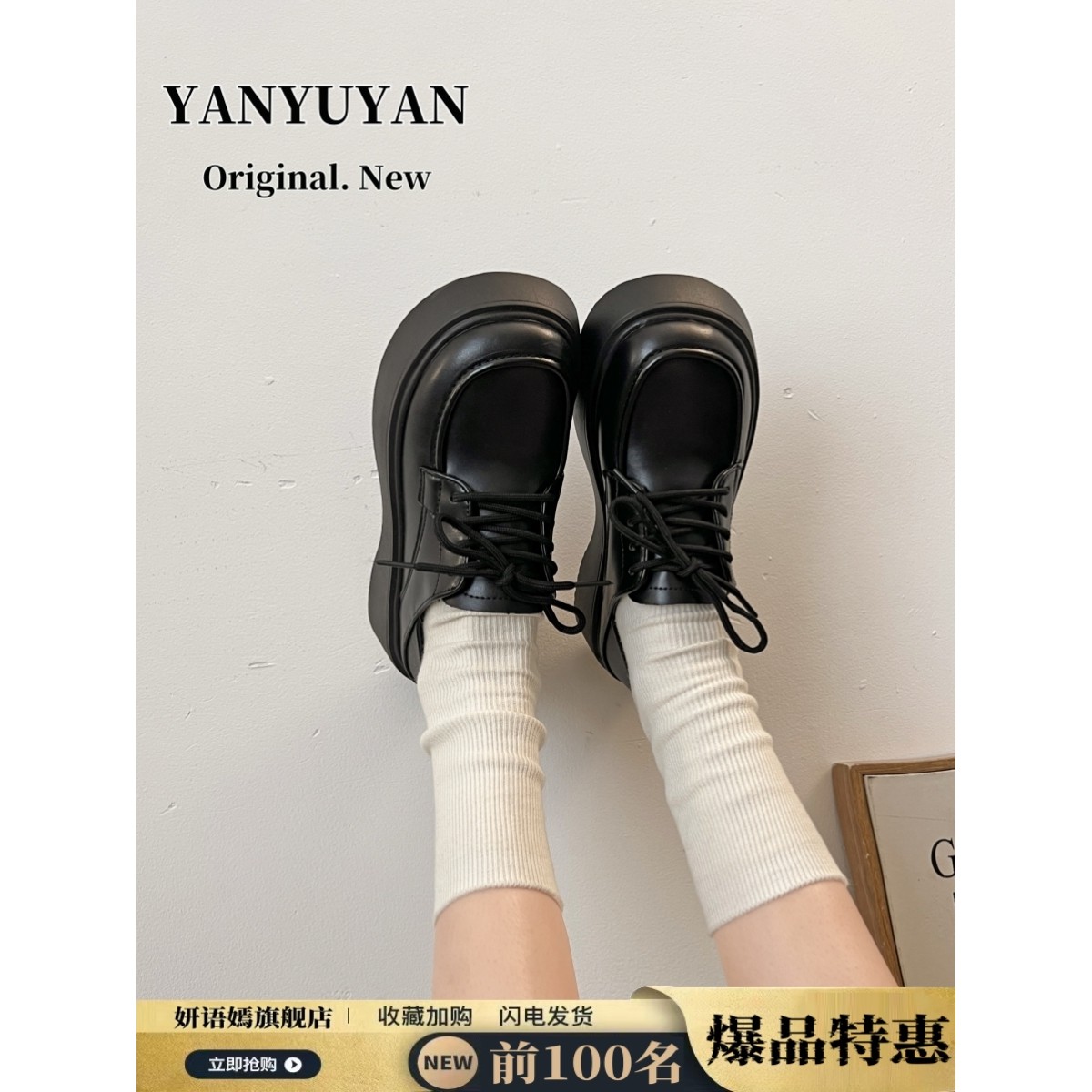 他她女孩小皮鞋女春新款英伦风复古加绒黑色百搭松糕增高jk鞋厚底