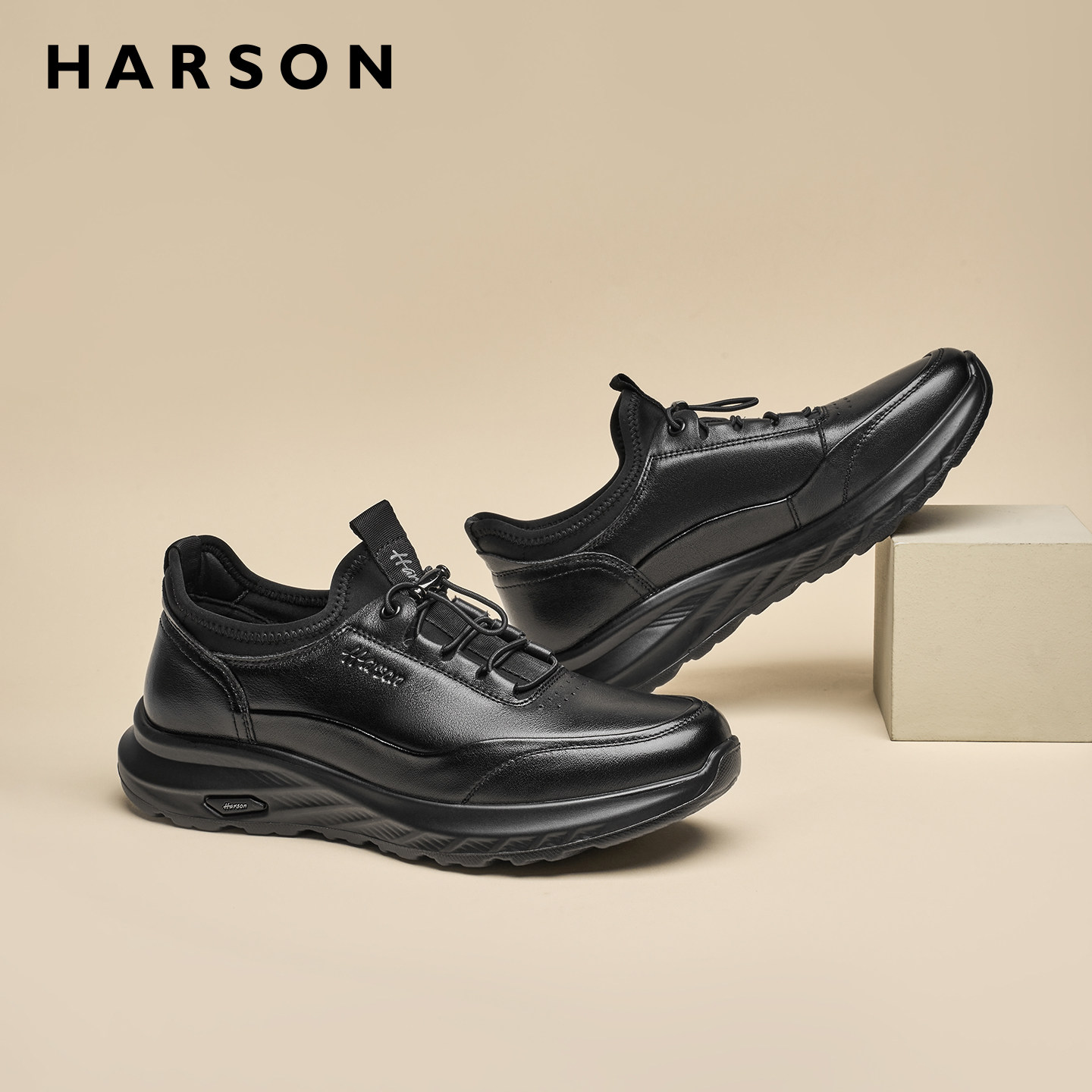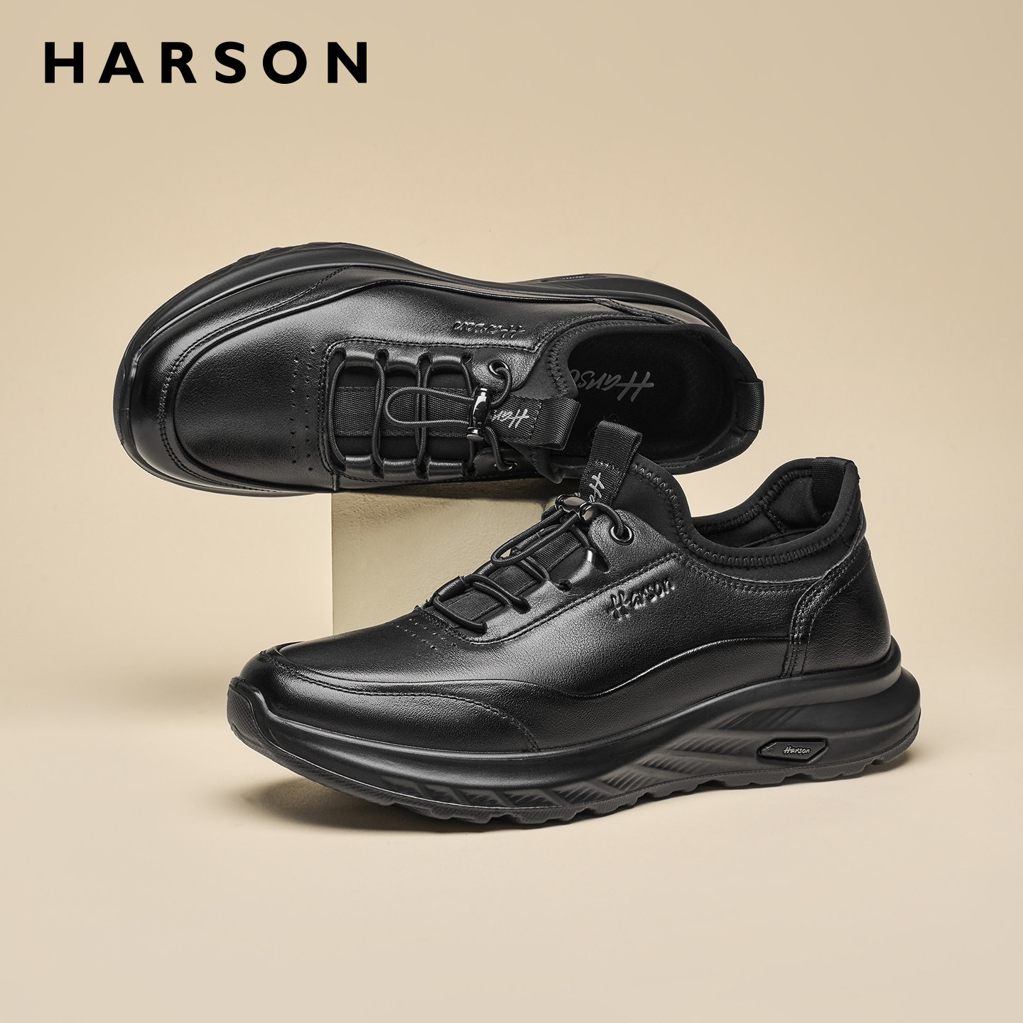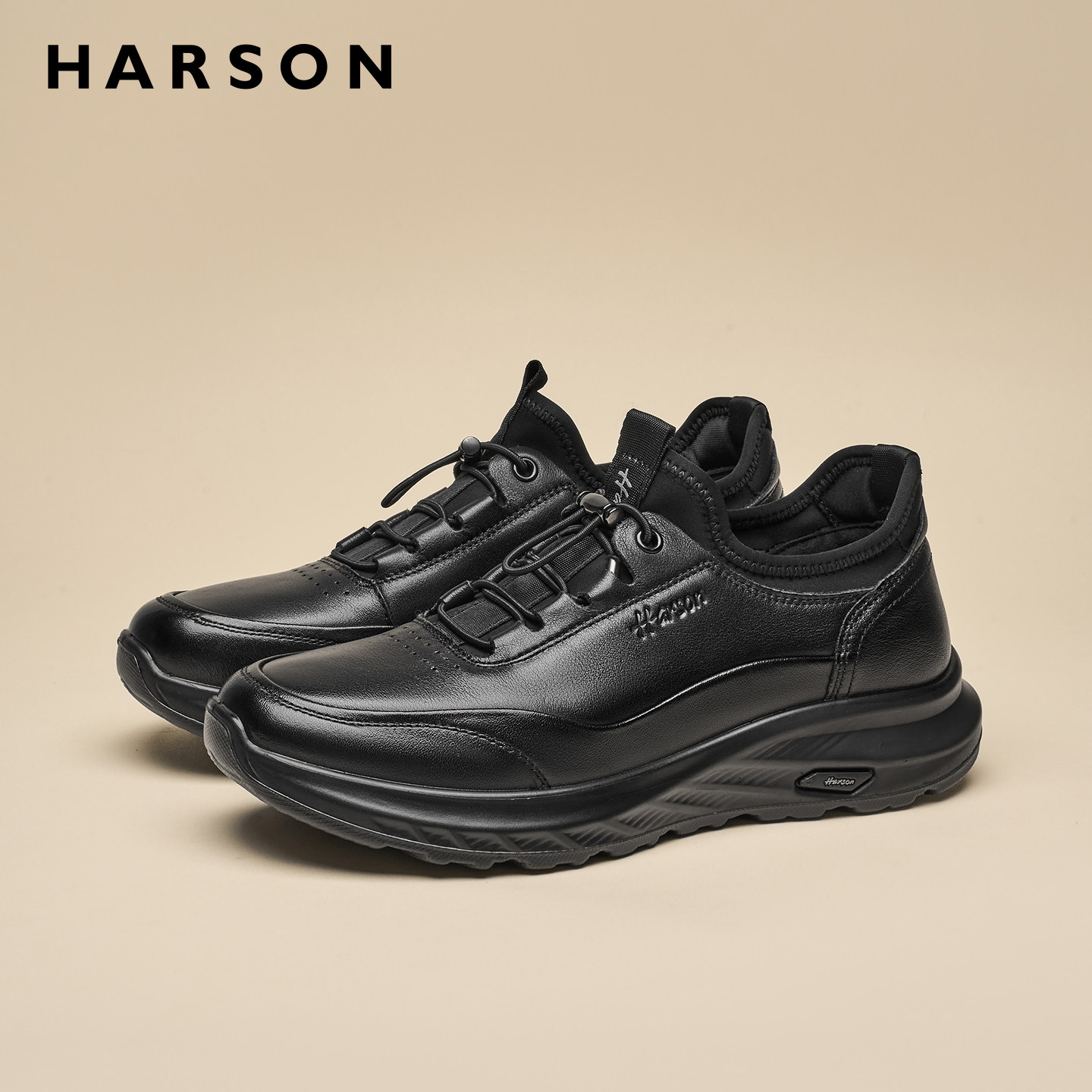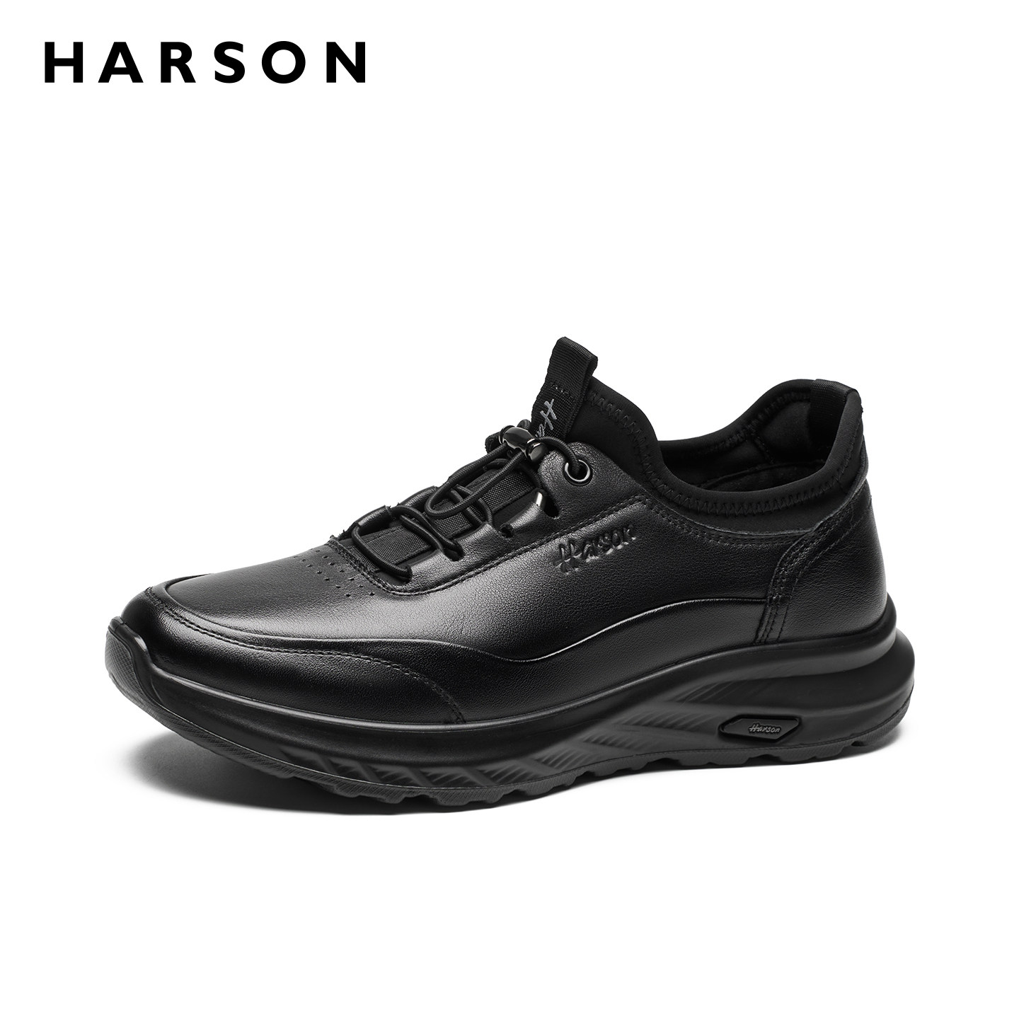 哈森冬季男鞋新款商务休闲皮鞋男士黑色公务通勤真皮运动鞋子软底