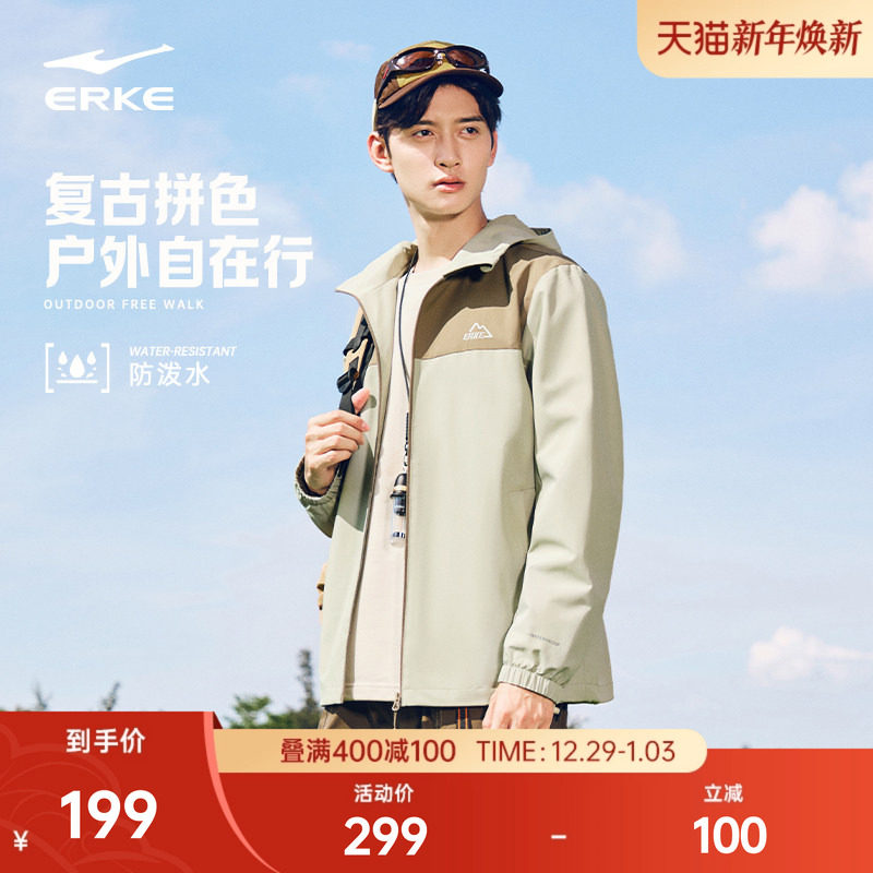 鸿星尔克小山标外套男冬季新款男士运动户外拼接撞色夹克风衣男装