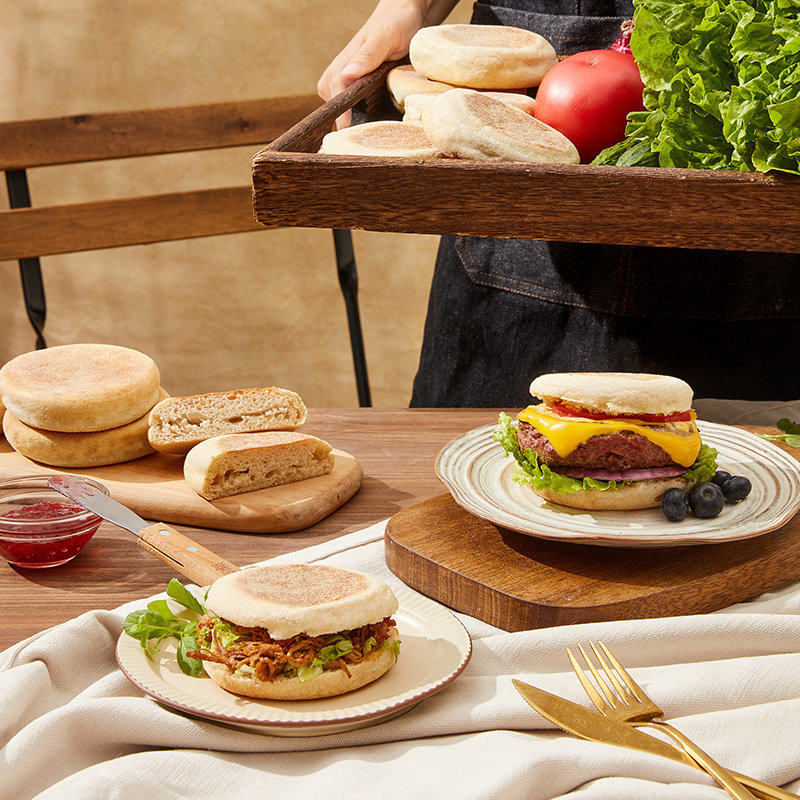 全麦英式低脂麦芬汉堡胚三明治面包松饼营养早餐半成品健康温暖